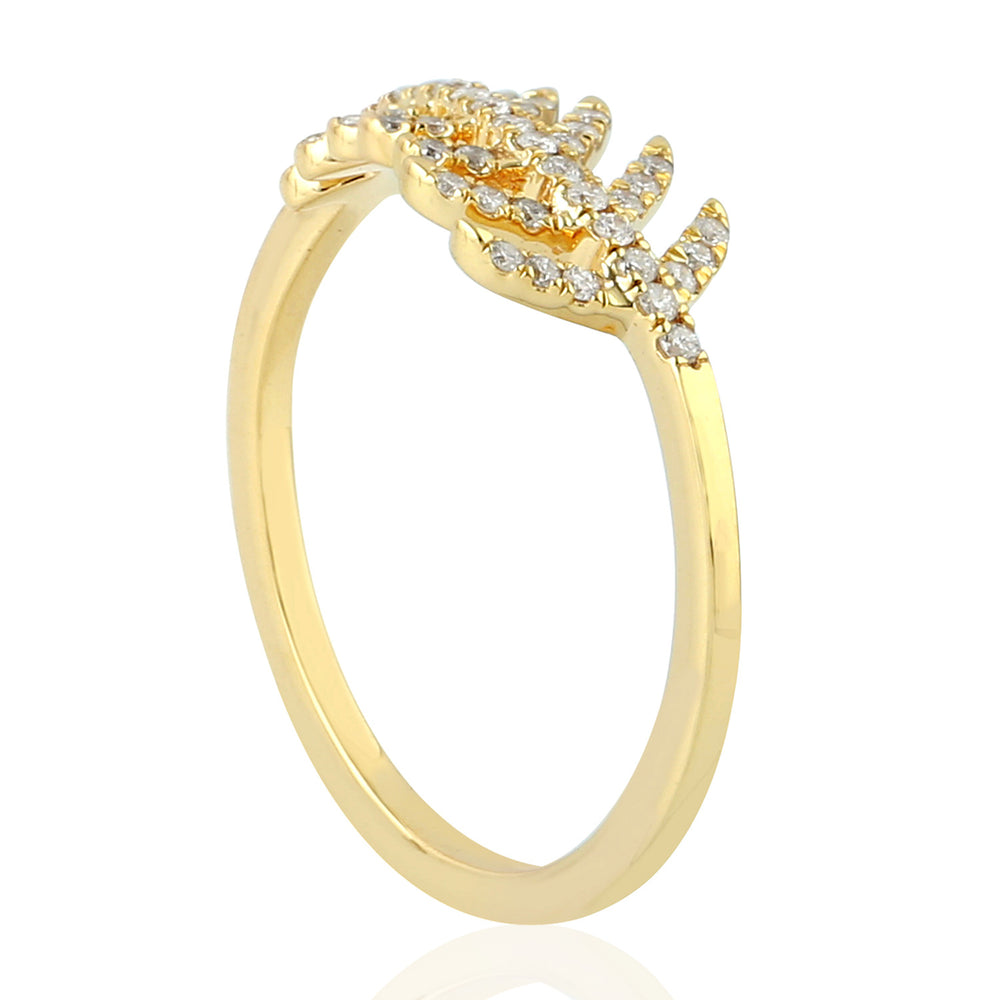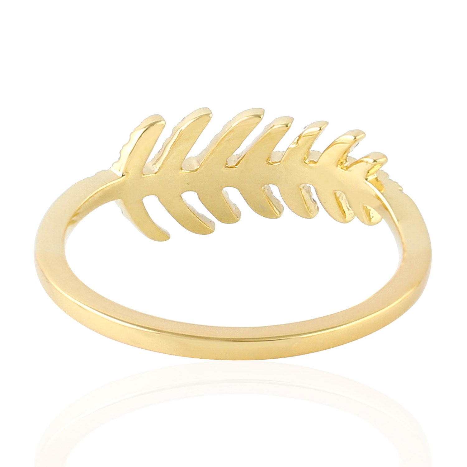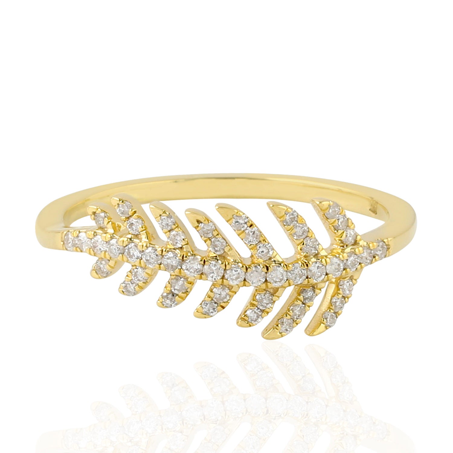 Natural Diamond Pave Leaf Design Ring In 18K Yellow Gold For Gifts