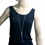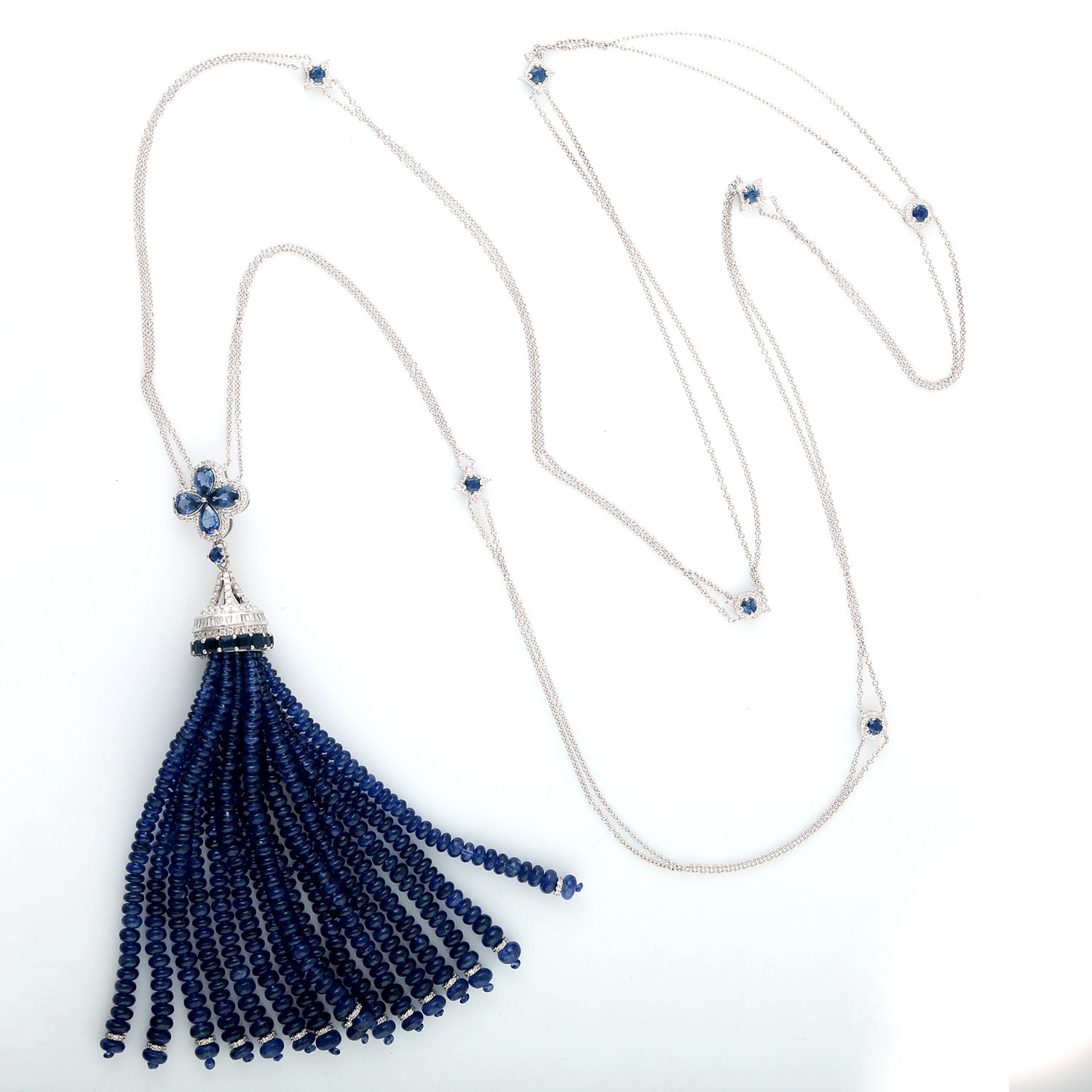 18k White Gold Chain Tassel Lariat Necklace Sapphire Beads Diamond For Her On Sale