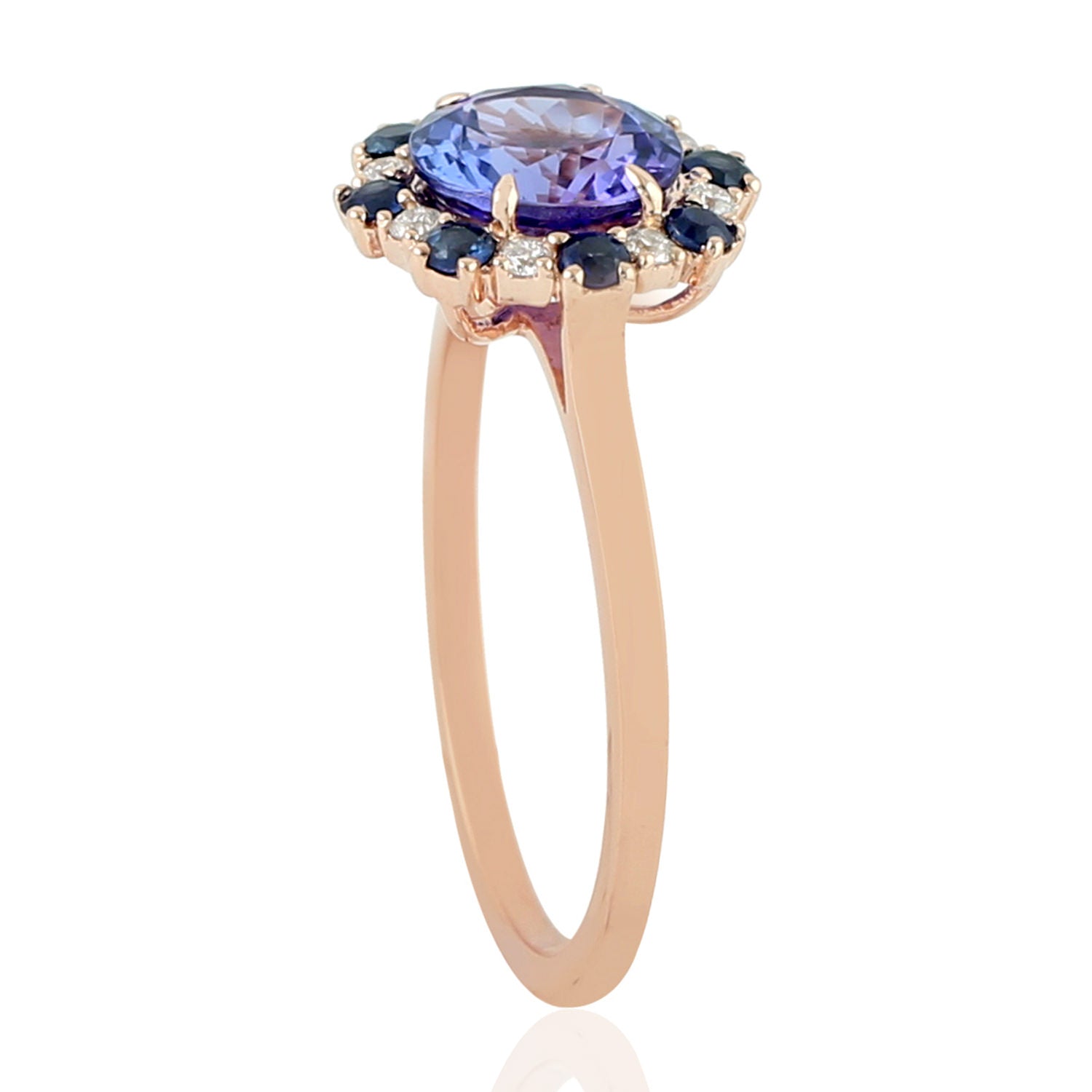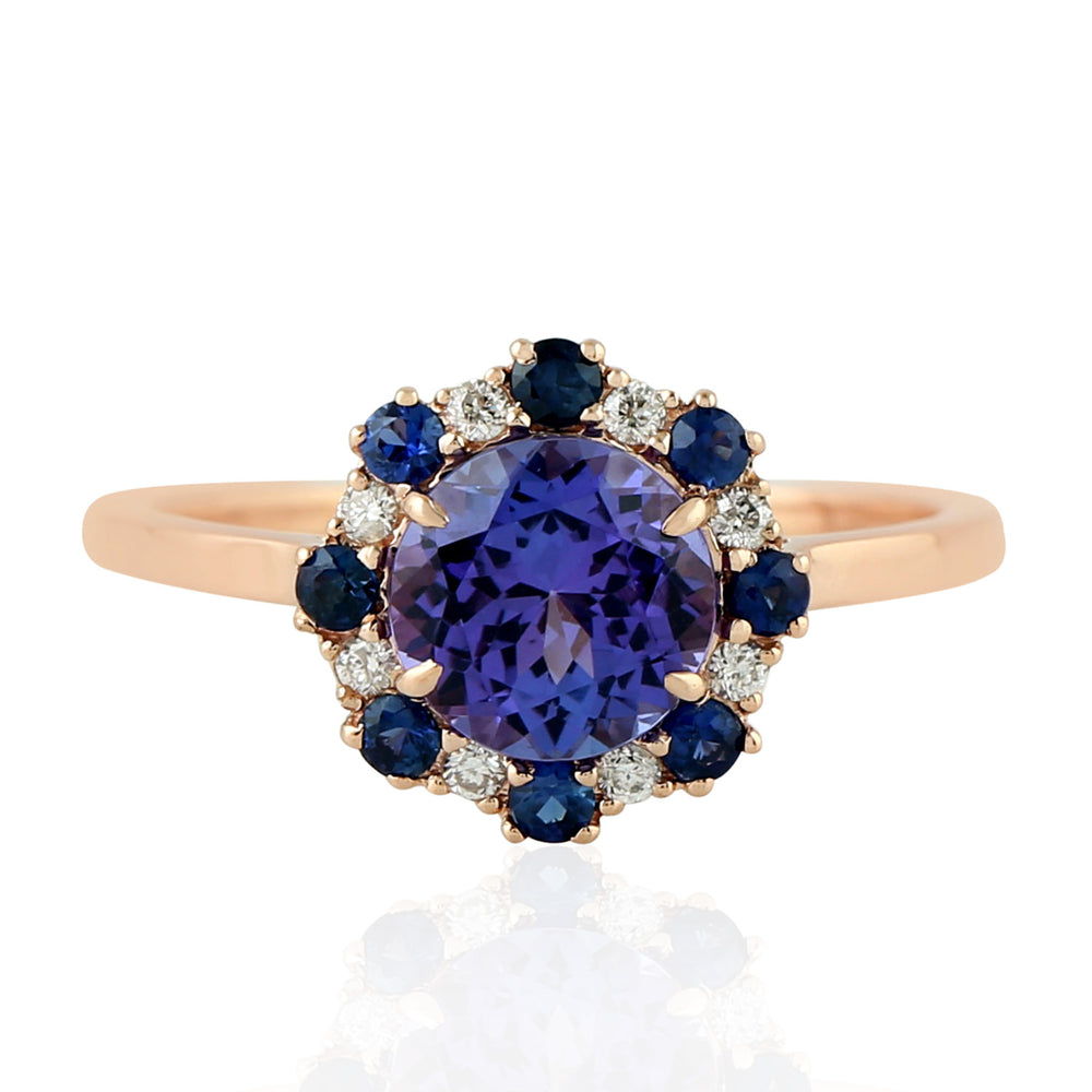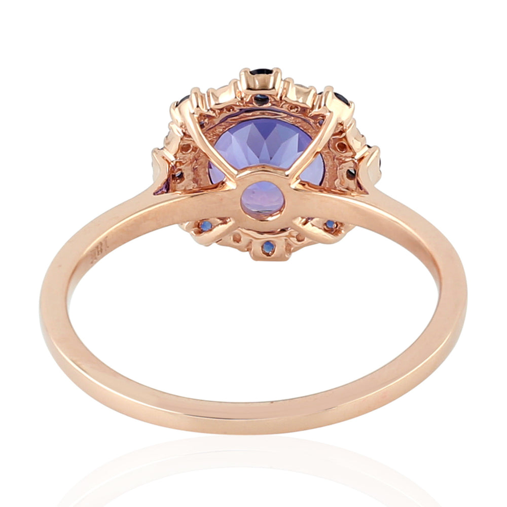 18k Rose Gold Prong Tanzanite Blue Sapphire Pave Diamond Solitaire Ring