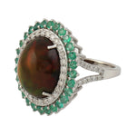 Oval Cut Opal Ethiopian Prong Emerald & Diamond Solitaire Ring In White Gold
