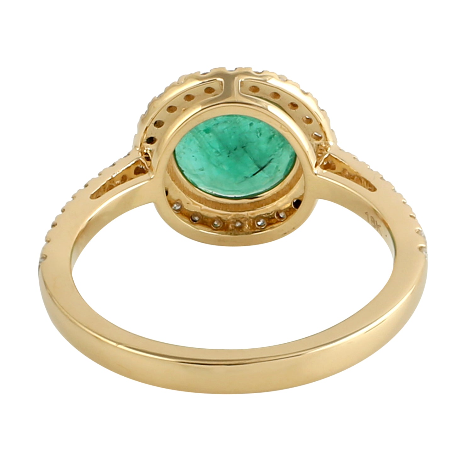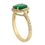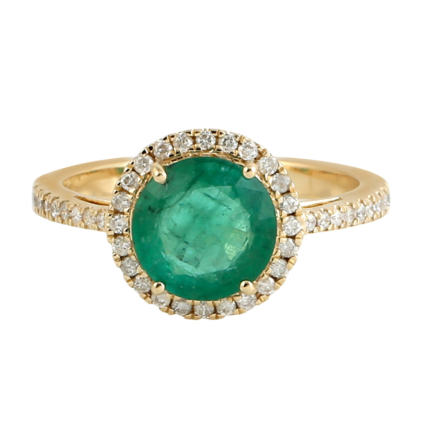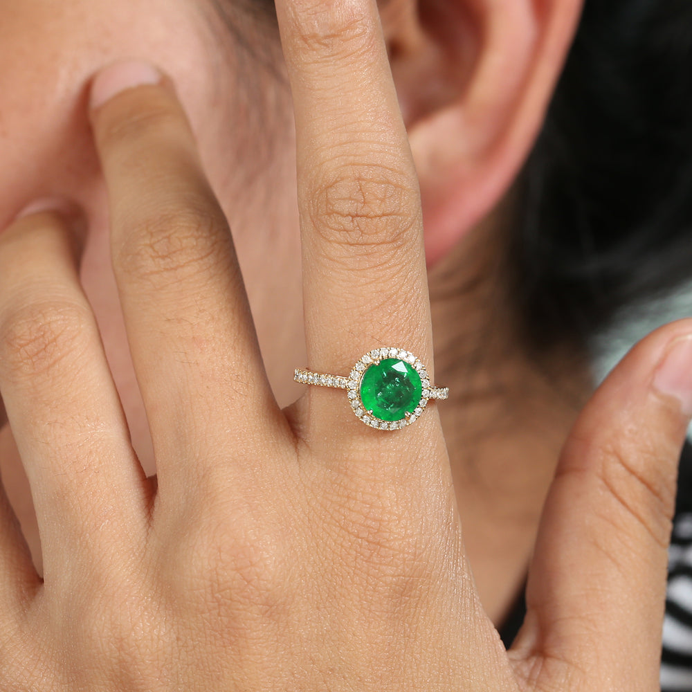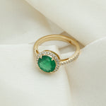 Round Emerald Pave Diamond Halo Delicate Solitaire Ring in 18k Yellow Gold
