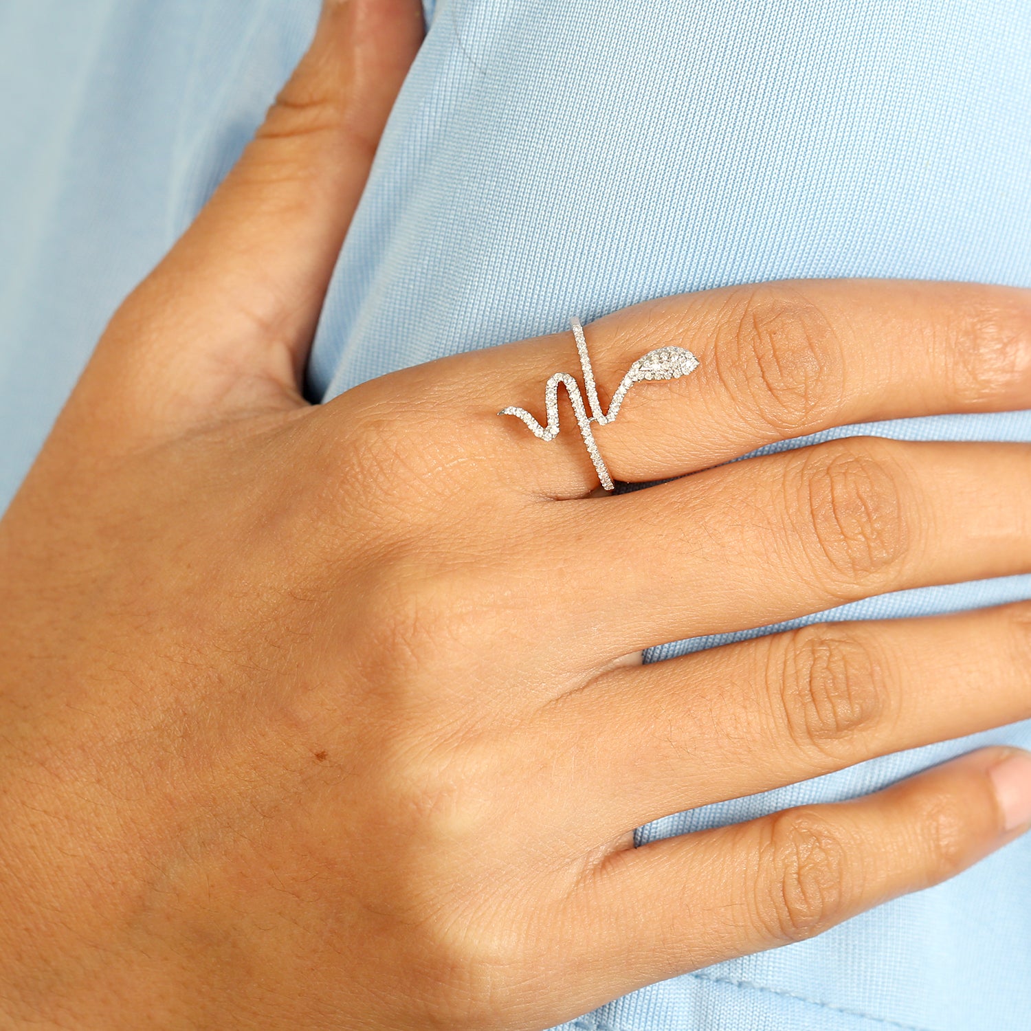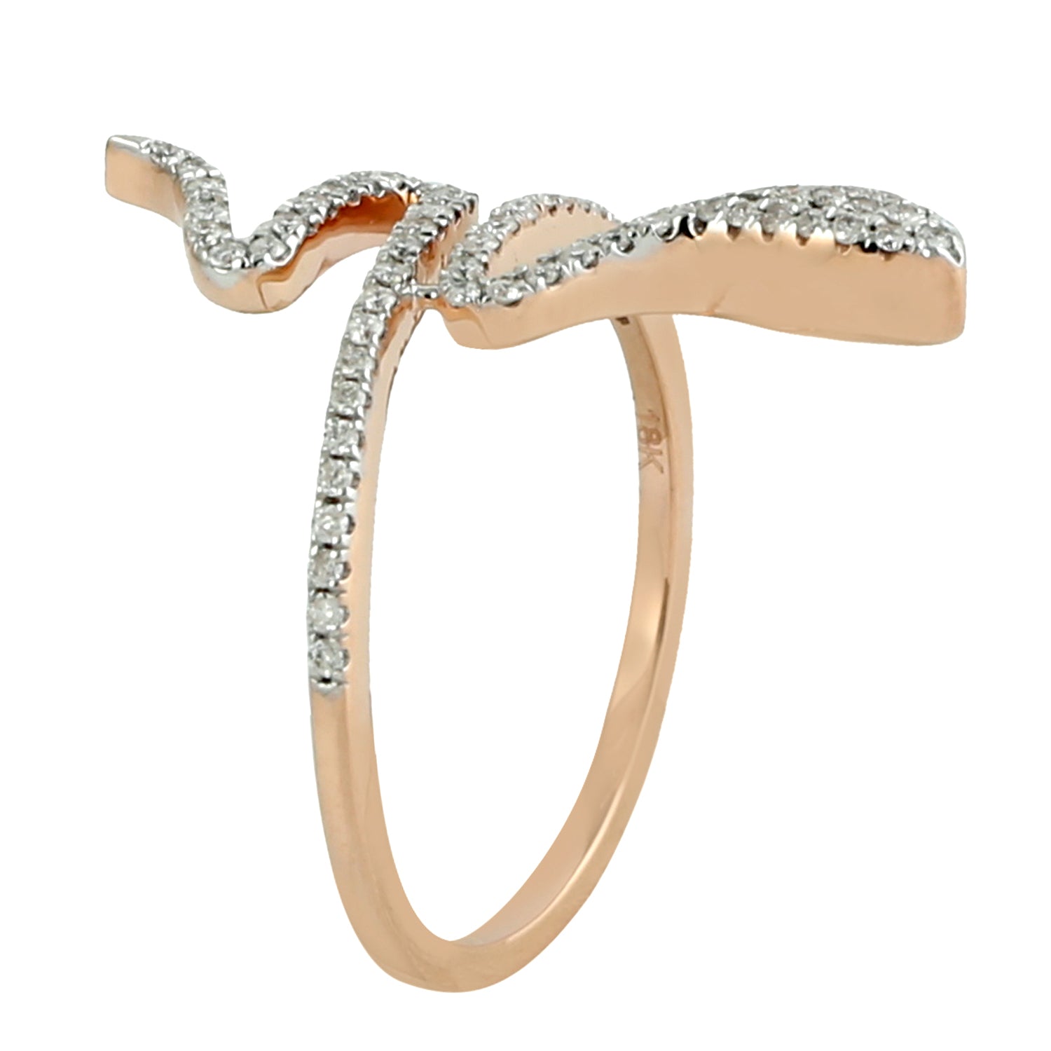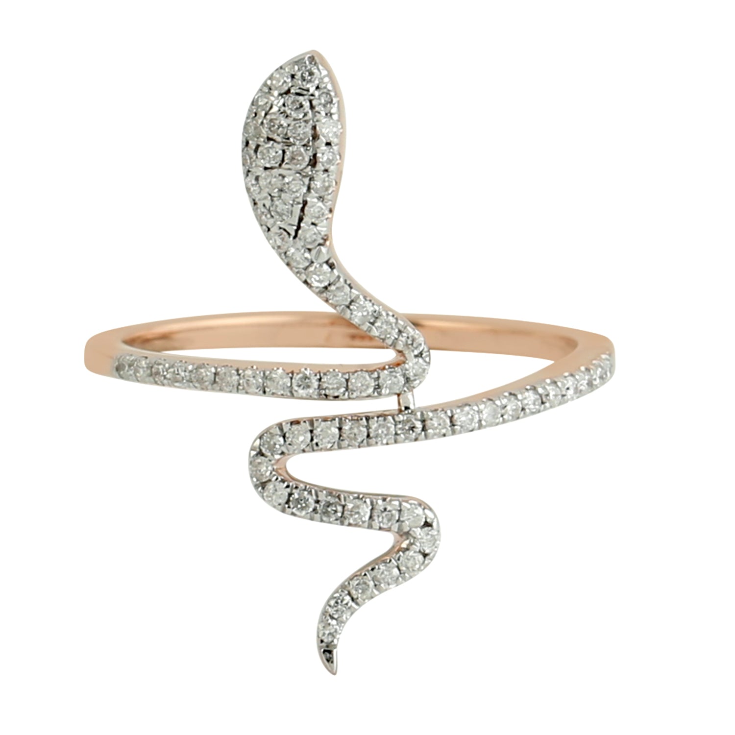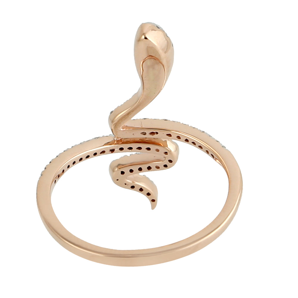 18K Rose Gold Pave Diamond Carved Snake Spiral Ring Jewelry