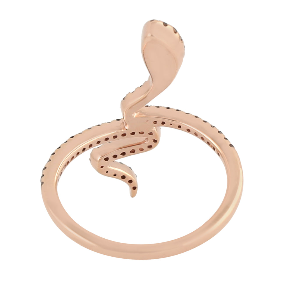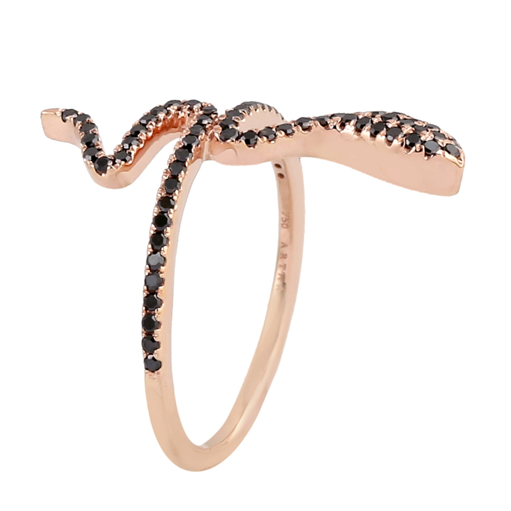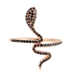 • Natural Black Diamond Carved Spiral Snake Ring In 18K Rose Gold