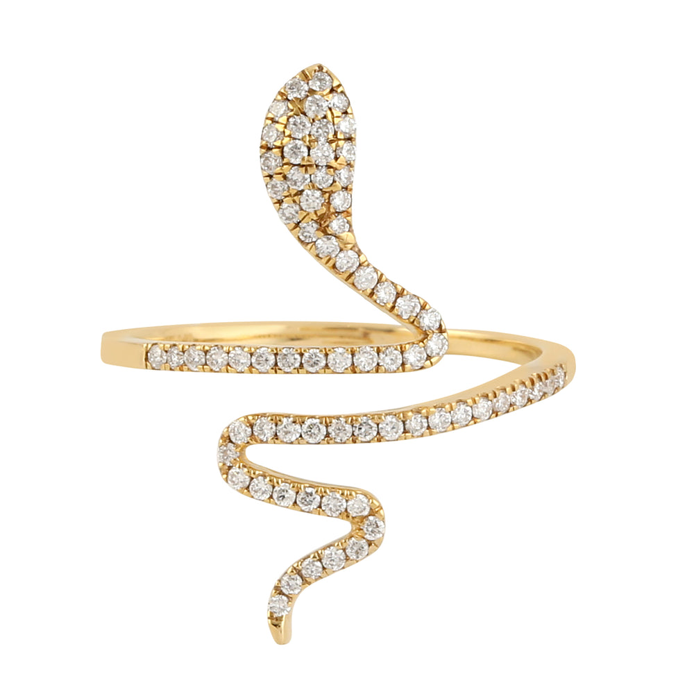 Pave Diamond Snake Between The Finger Ring Jewelry In 18k Yellow Gold