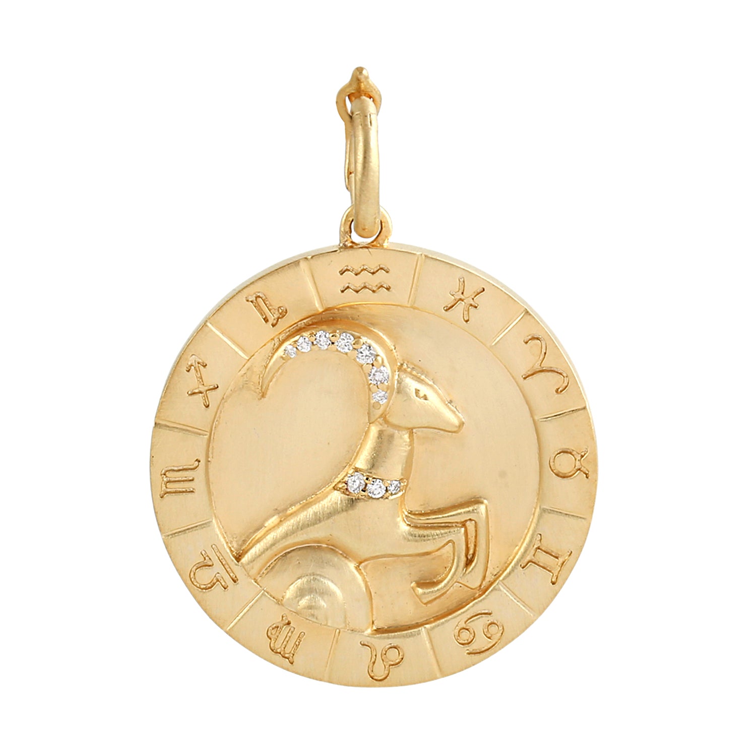 Capricorn Zodiac Medallion Diamond Pendant in 14K Yellow Gold