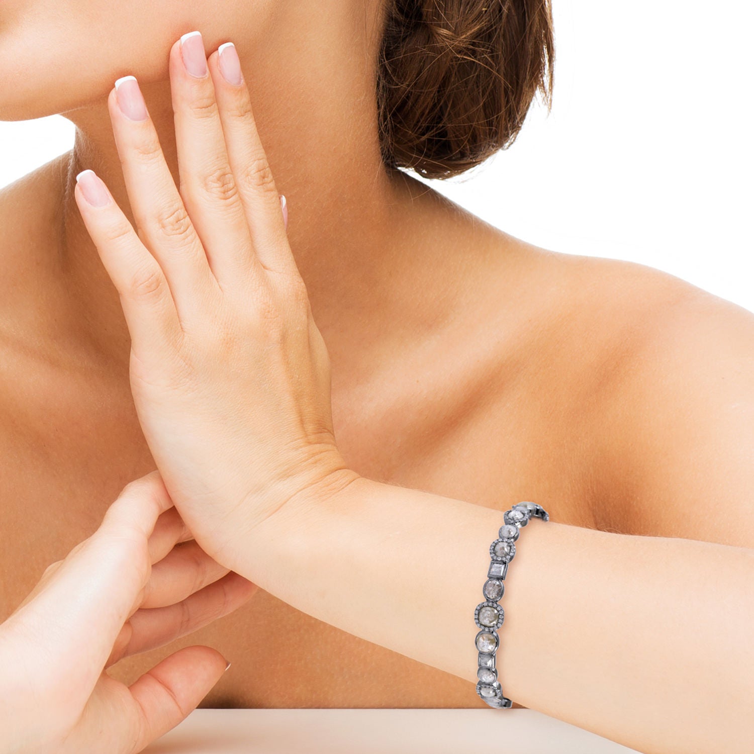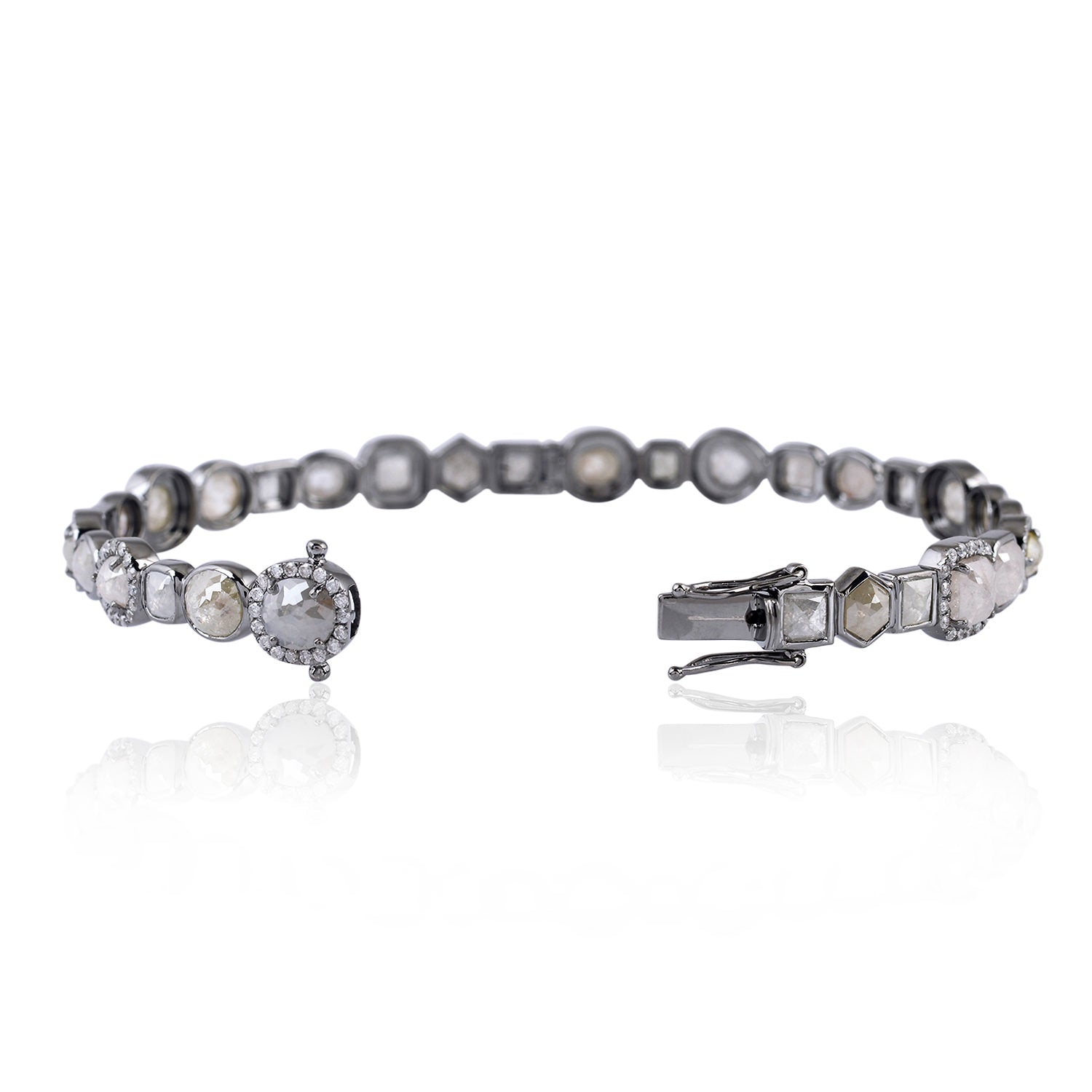 Ice -Cut Diamond Bezel Bangle Bracelet in 18K Oxidized Gold