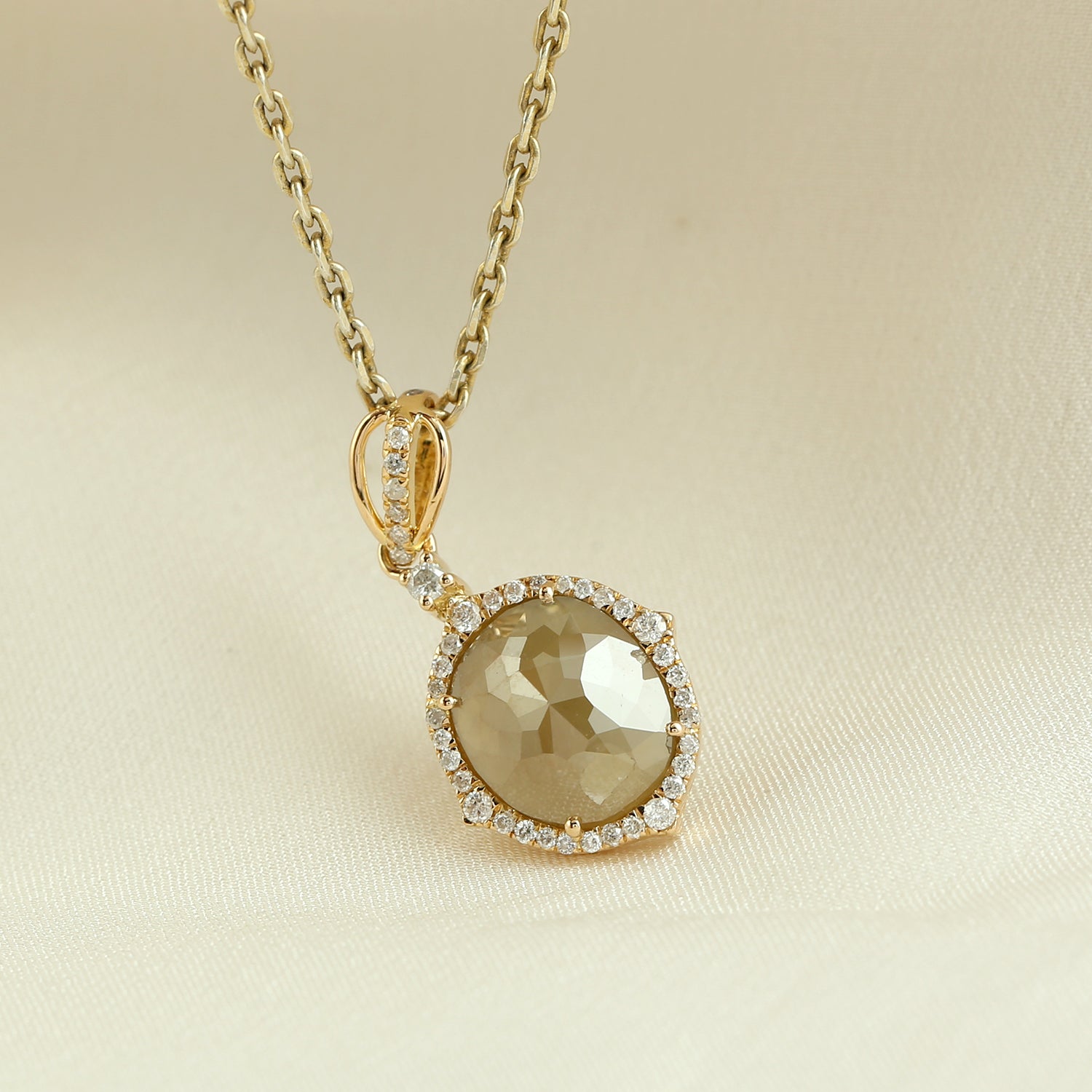 Ice Diamond & White Diamond Halo Pendant in 18K Yellow Gold