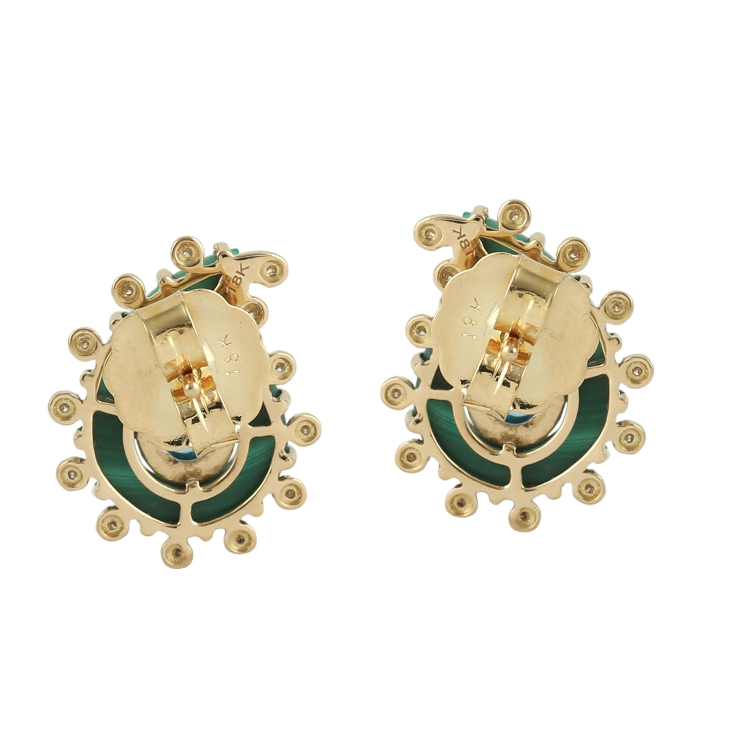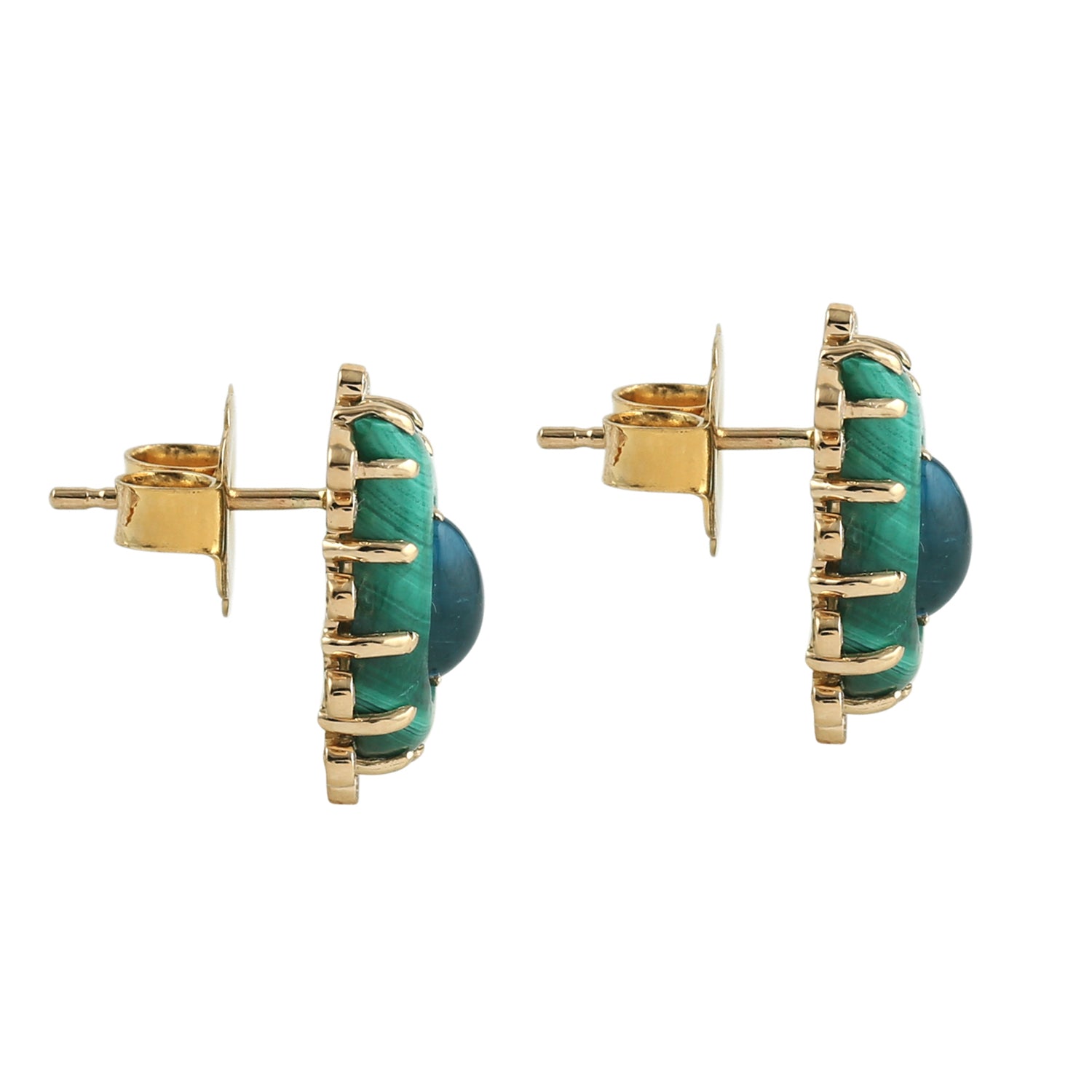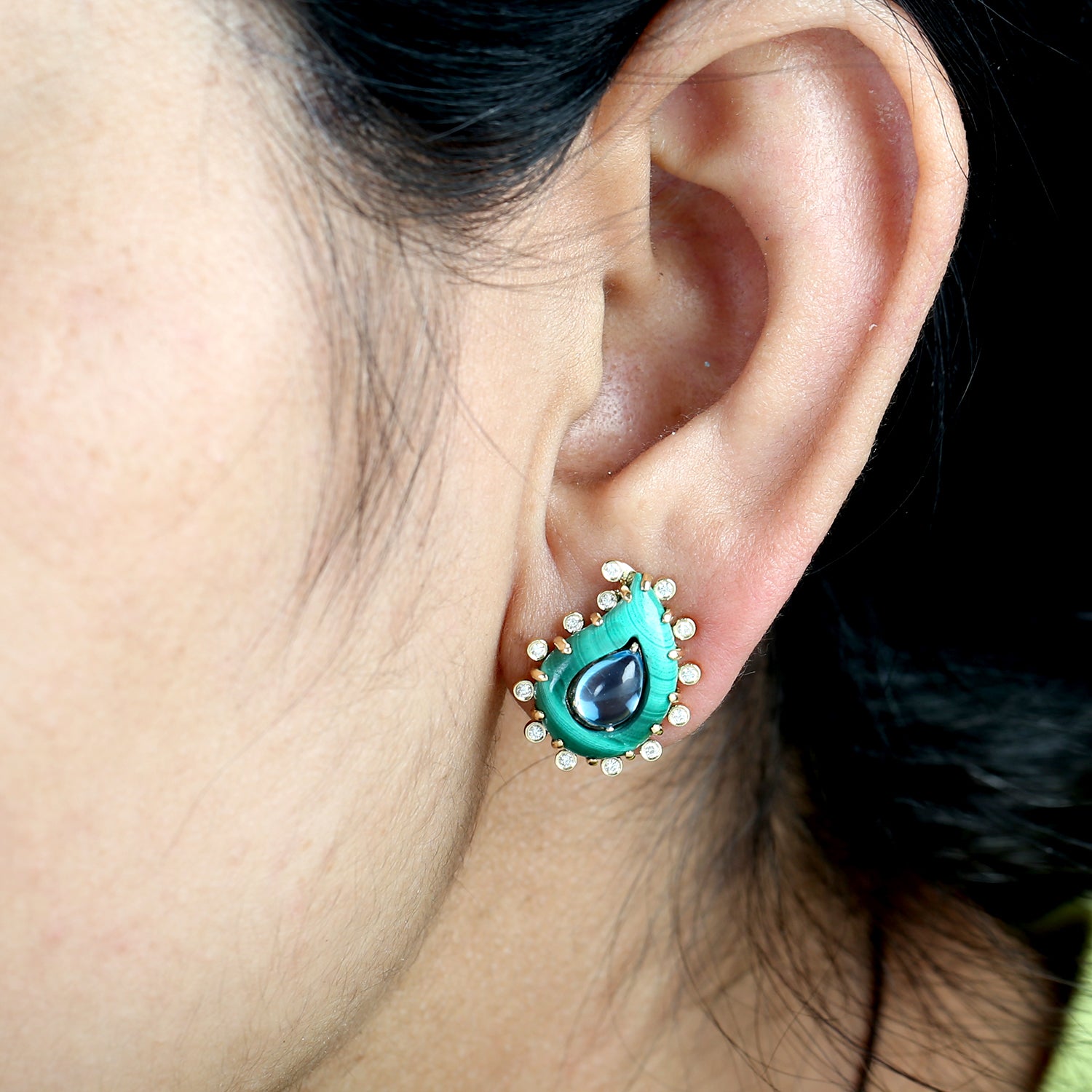 Malachite & Pear-Shaped Blue Topaz Diamond Stud Earrings in 18K Yellow Gold