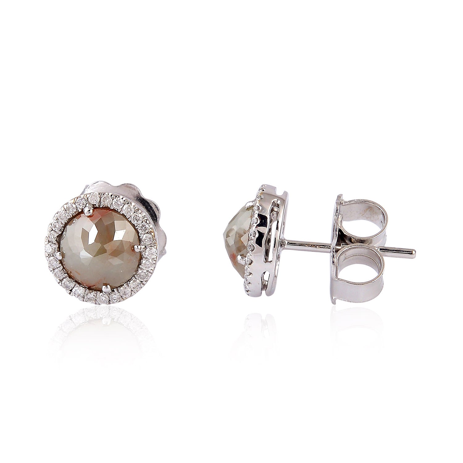• Rose-Cut Natural Ice Diamond Halo Stud Earrings in 18K White Gold