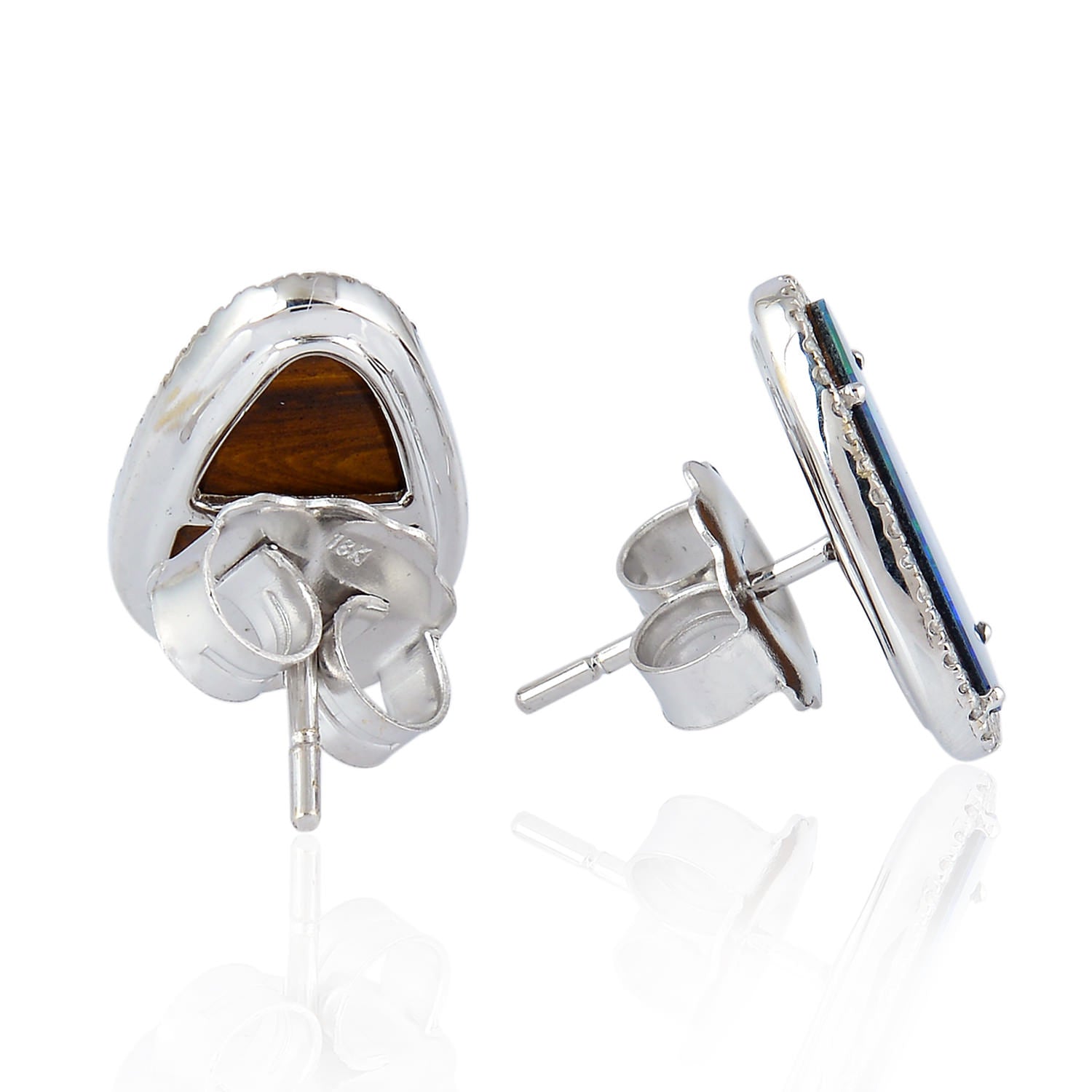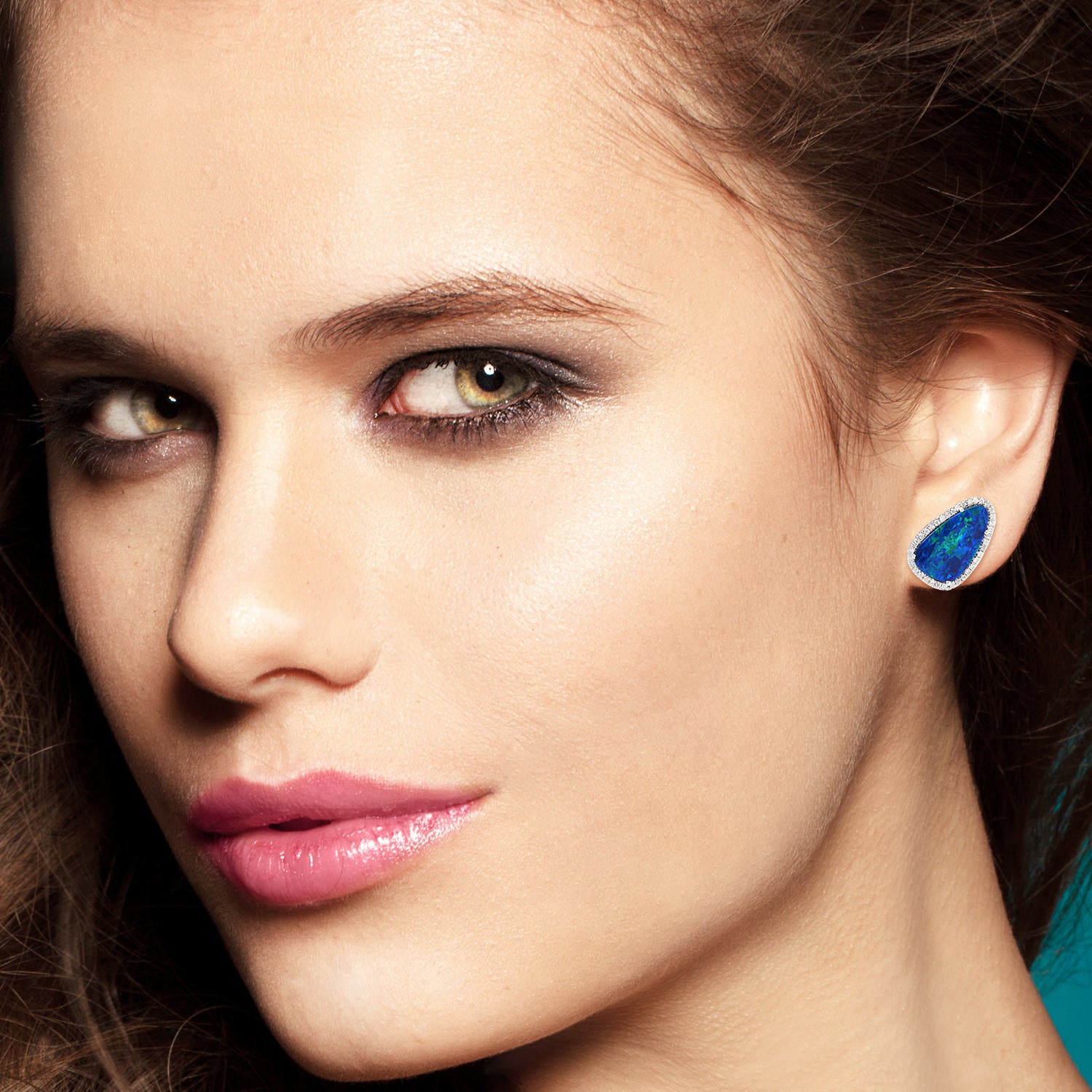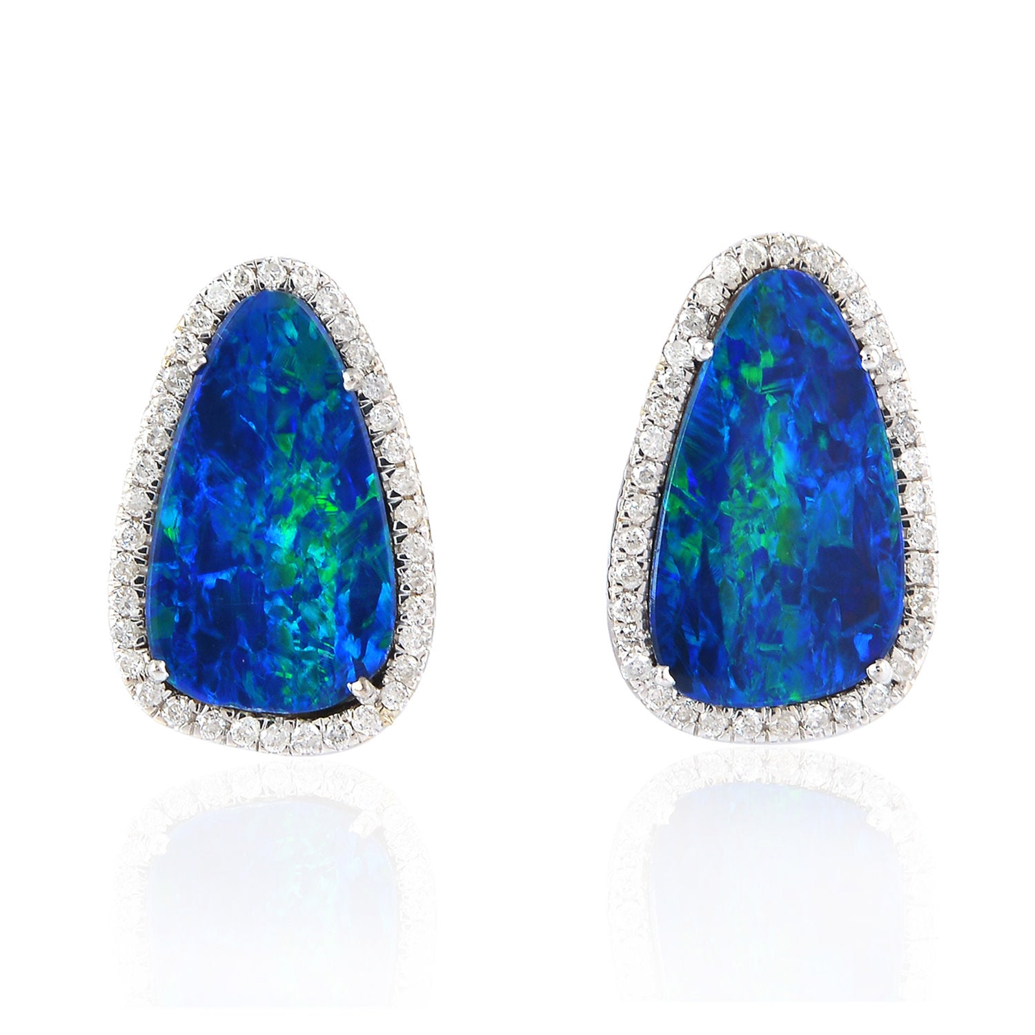 • 18K White Gold Australian Opal Doublet & Diamond Halo Stud Earrings