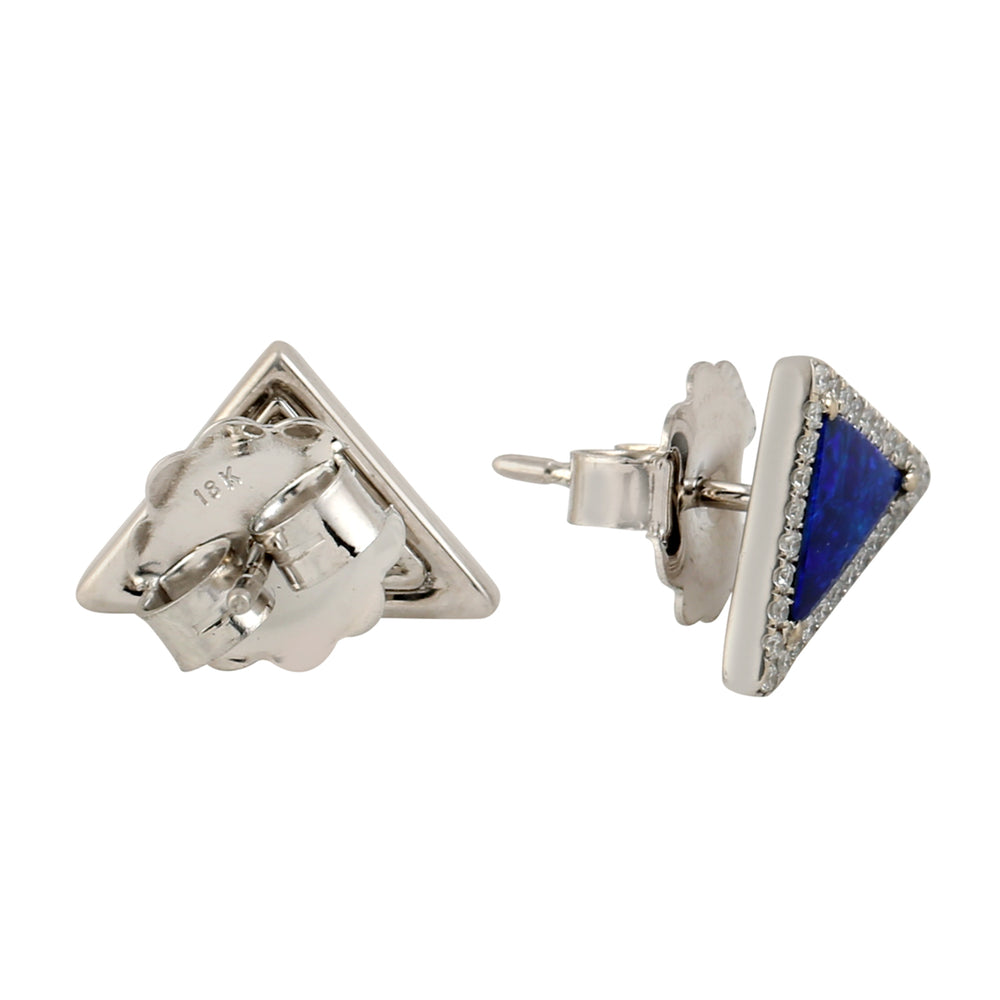 18k White Gold Studded Diamond Doublet Opal Trilliant Stud Earrings