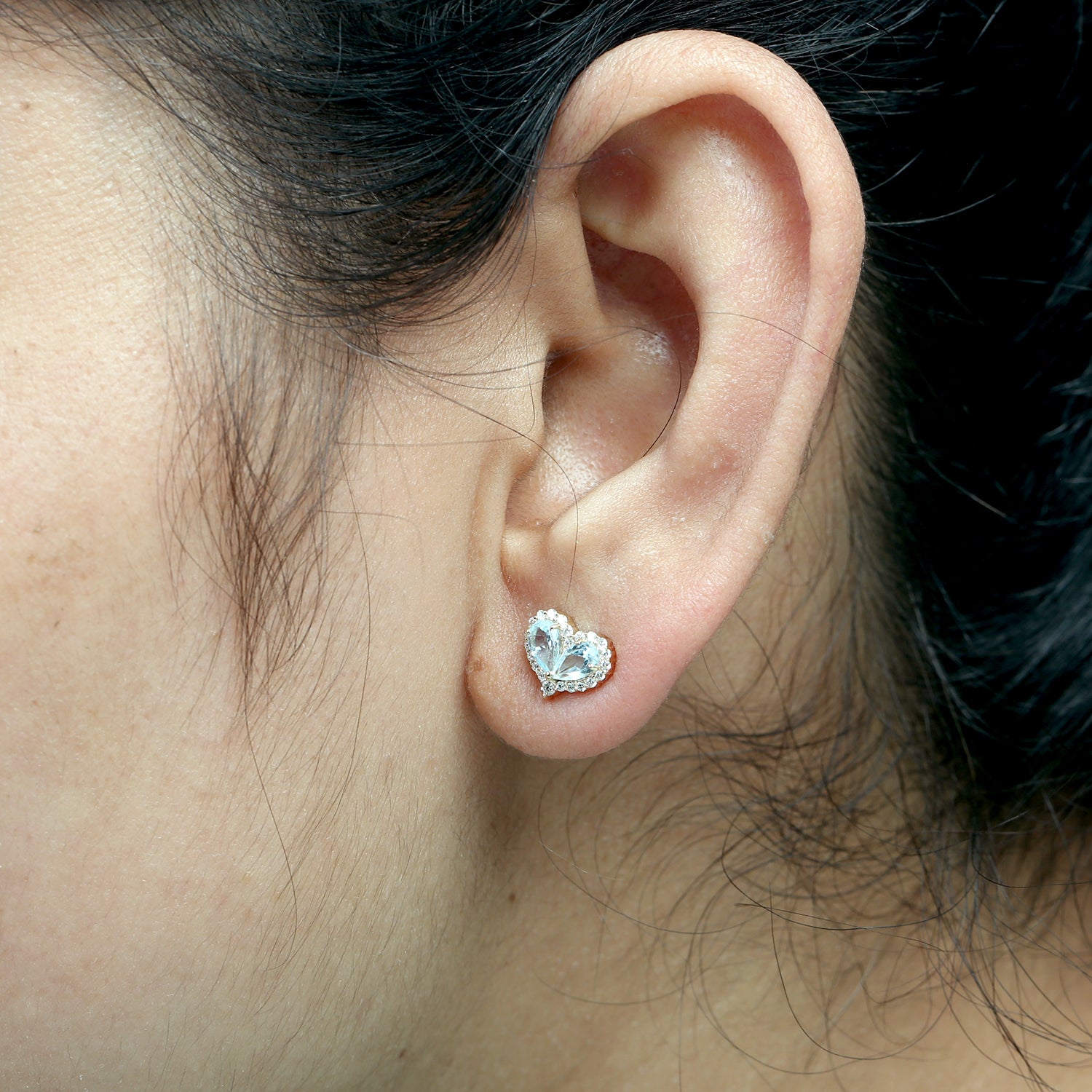 Blue Topaz & Diamond Heart Stud Earrings in 18K Yellow Gold