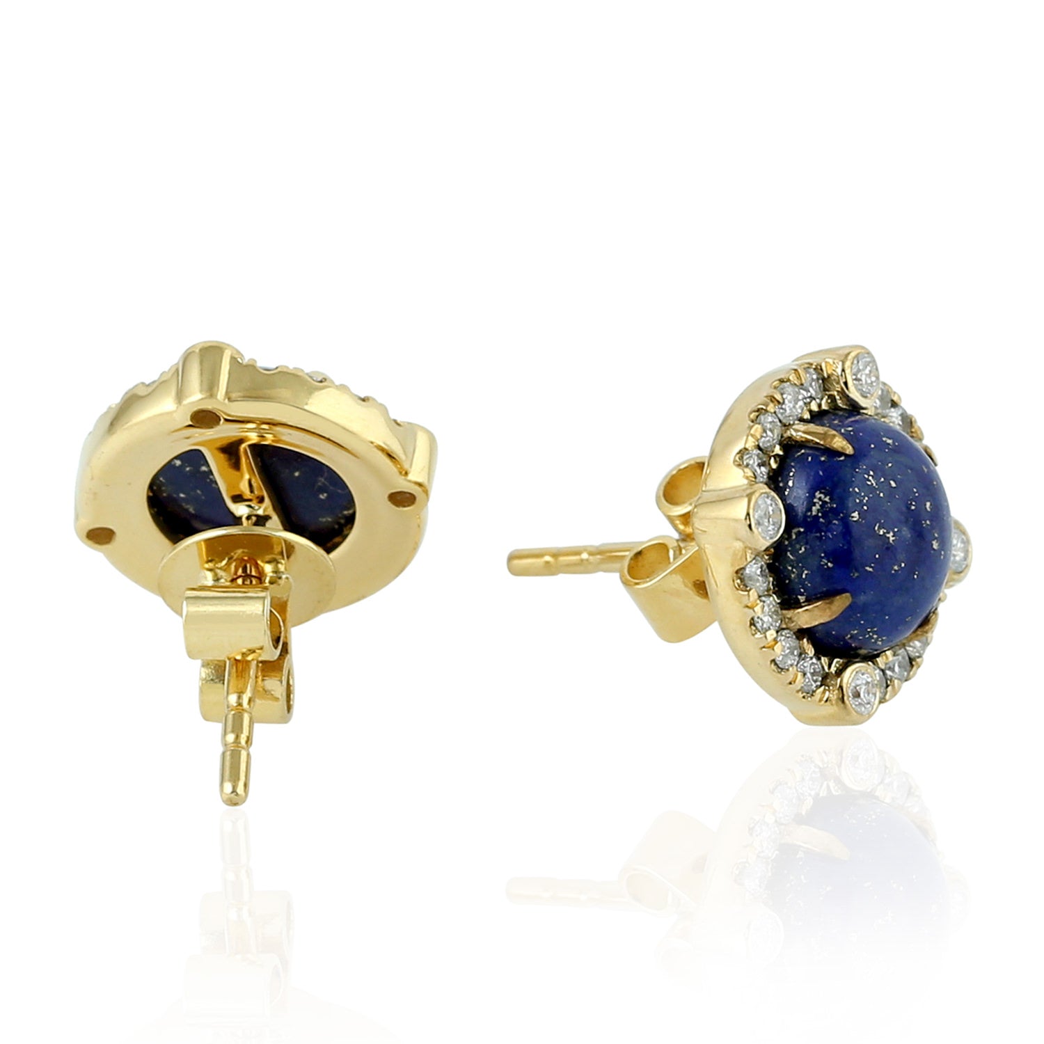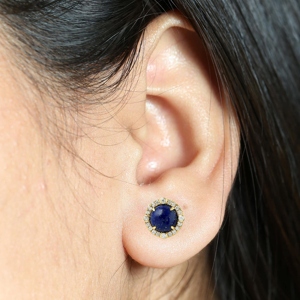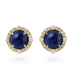 • Lapis Gemstone Pave Diamond Round Stud Earring In 18k Yellow Gold