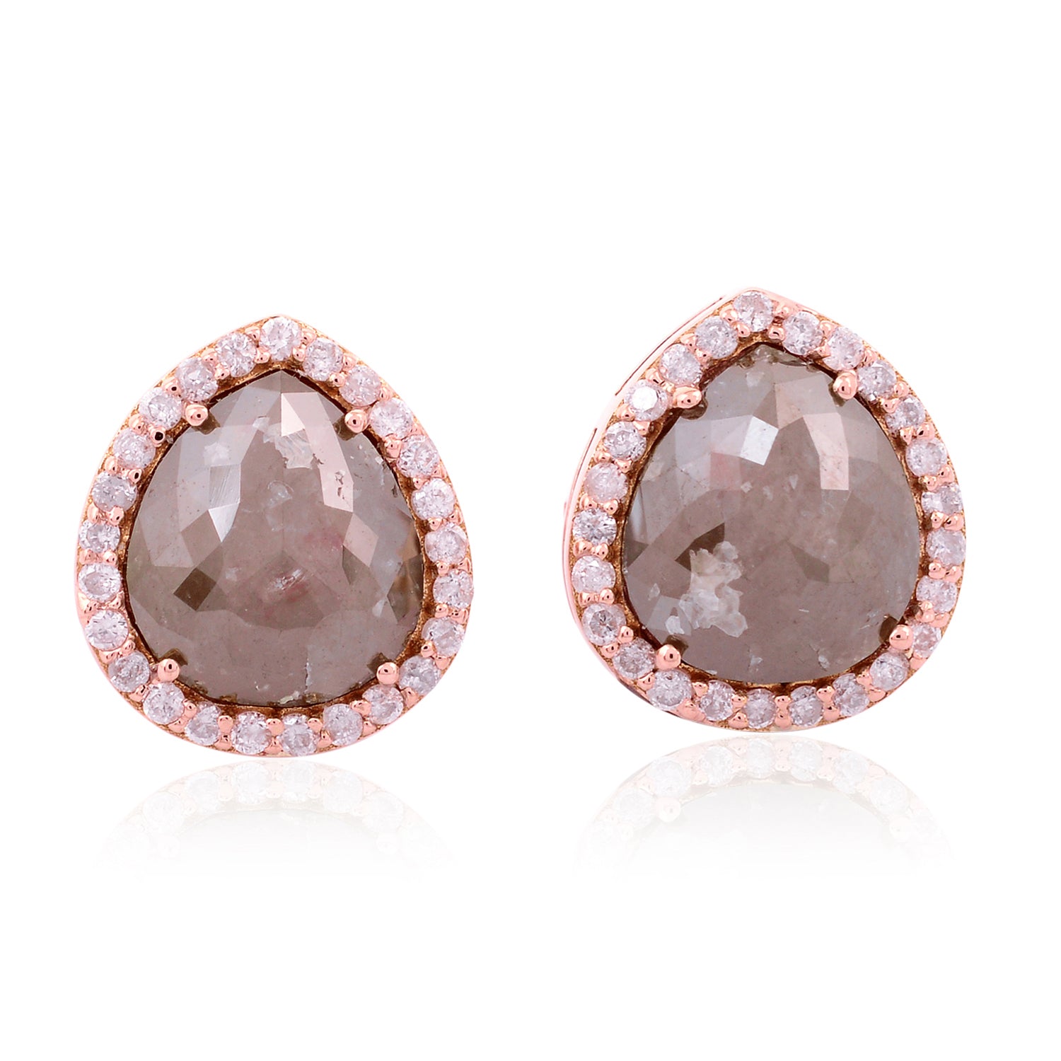 Rose Cut Ice Diamond Halo Stud Earrings in 18K Rose Gold