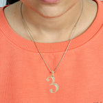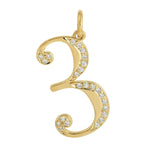 Pave Diamond "3" Numeric Initials Pendant Jewelry In 14k Yellow Gold