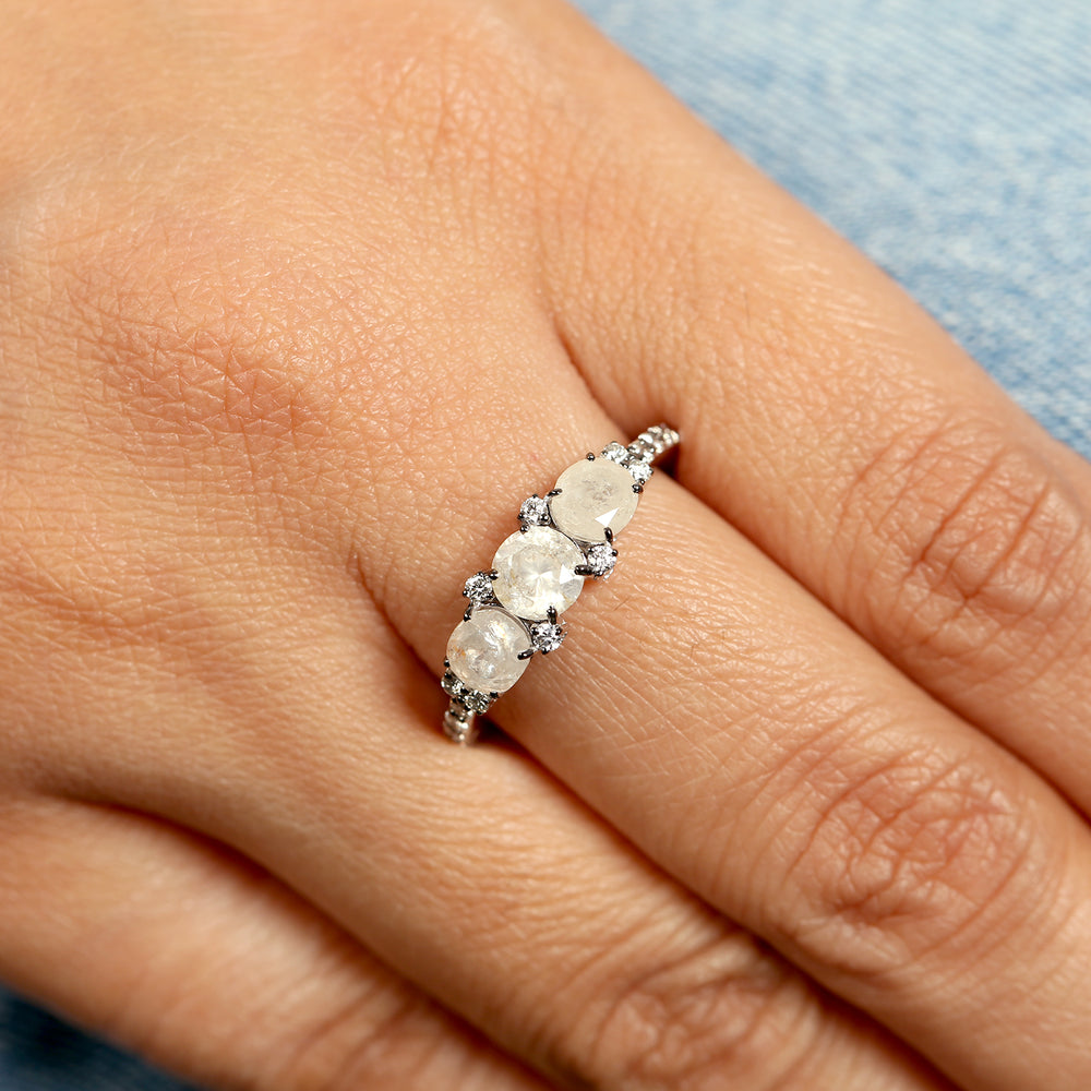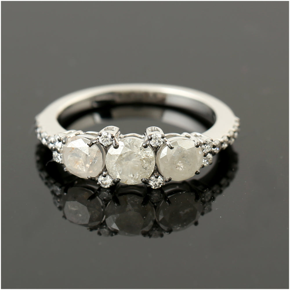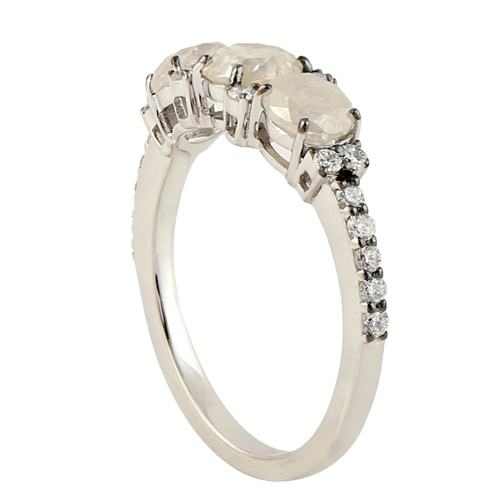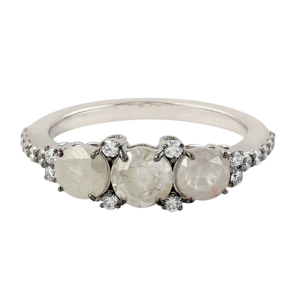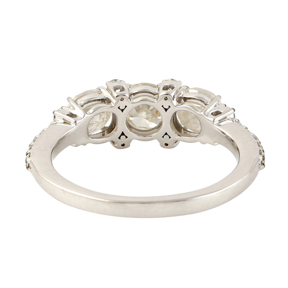 Ice Diamond Handmade Beautiful Three Stone Ring In 18k White Gold