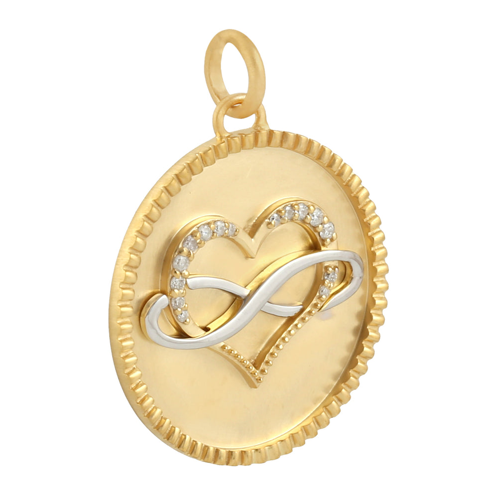14k Gold Infinity and Heart Symbol Pave Diamond Pendant Handmade Jewelry
