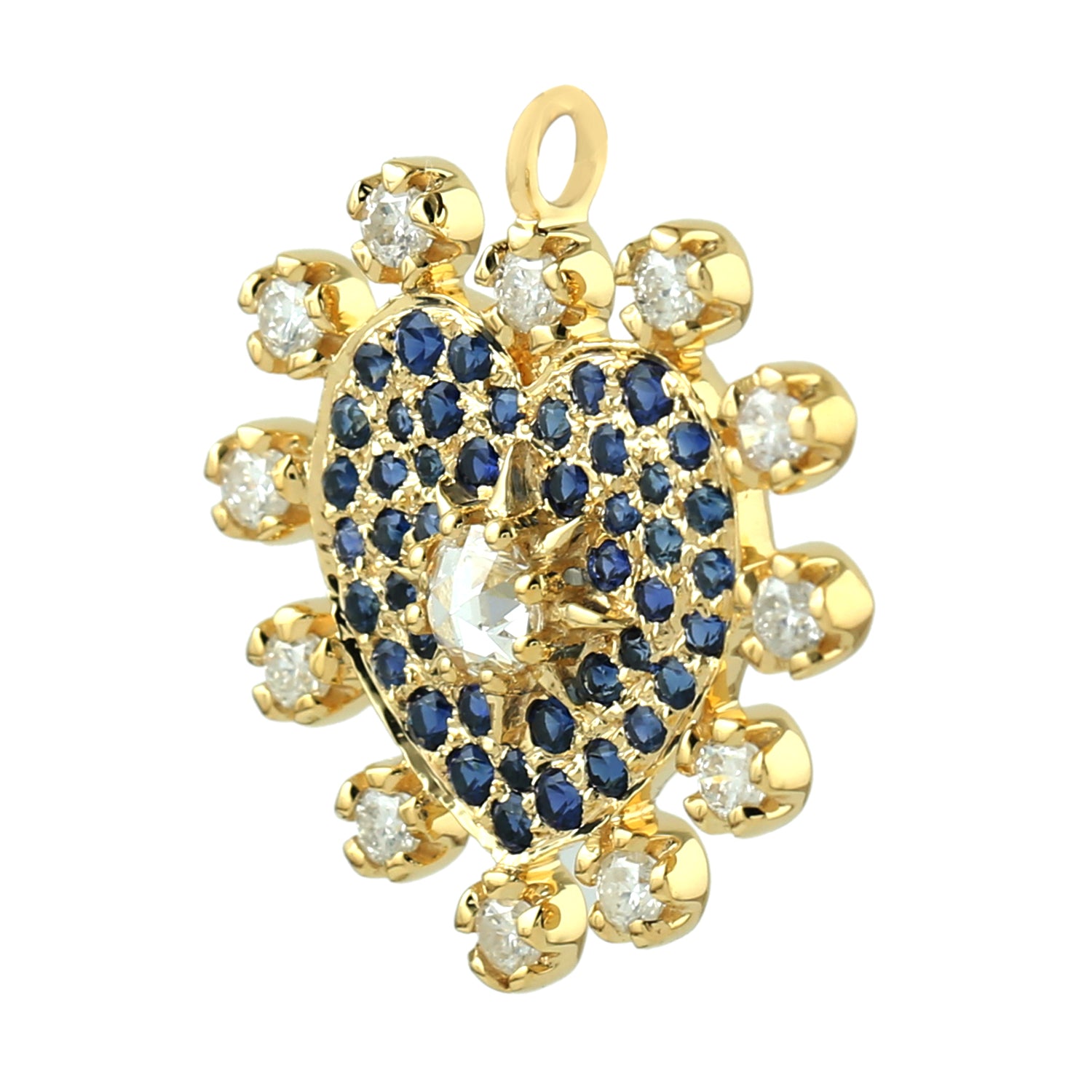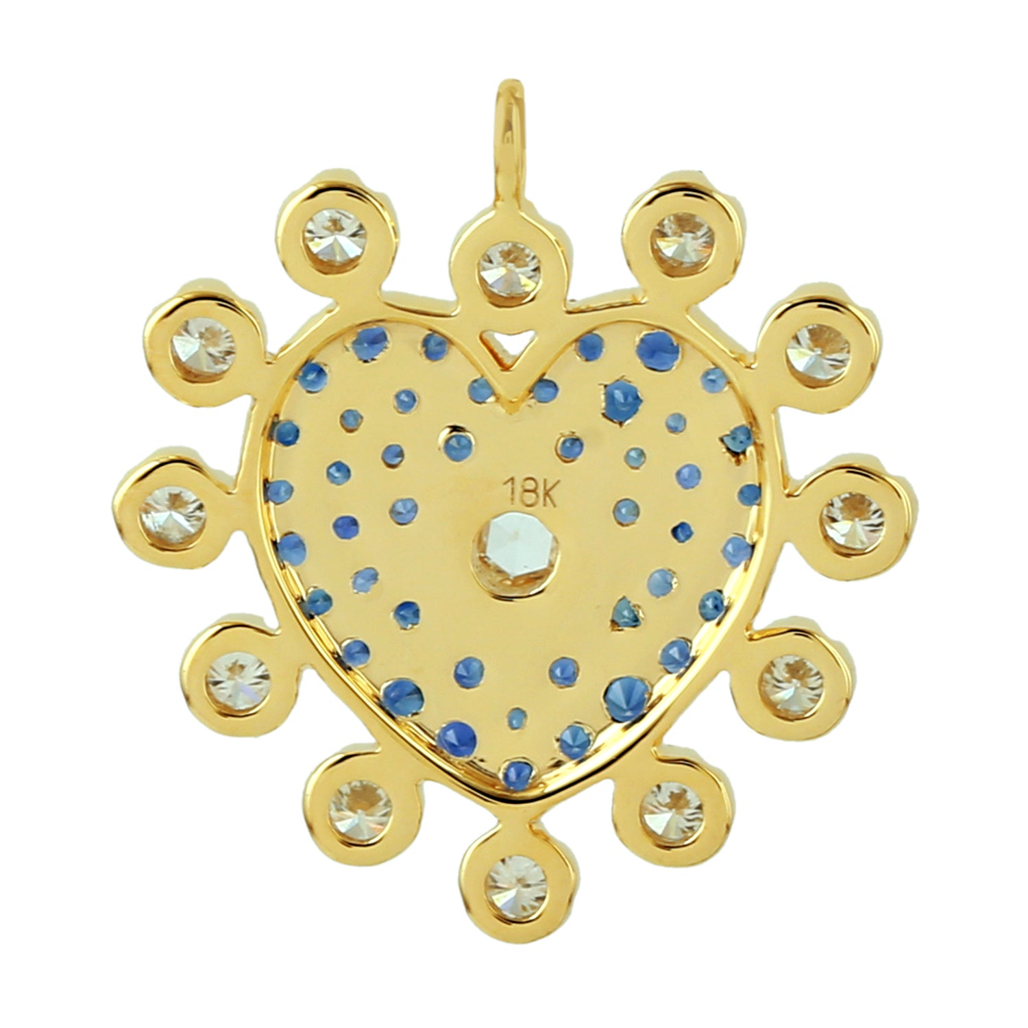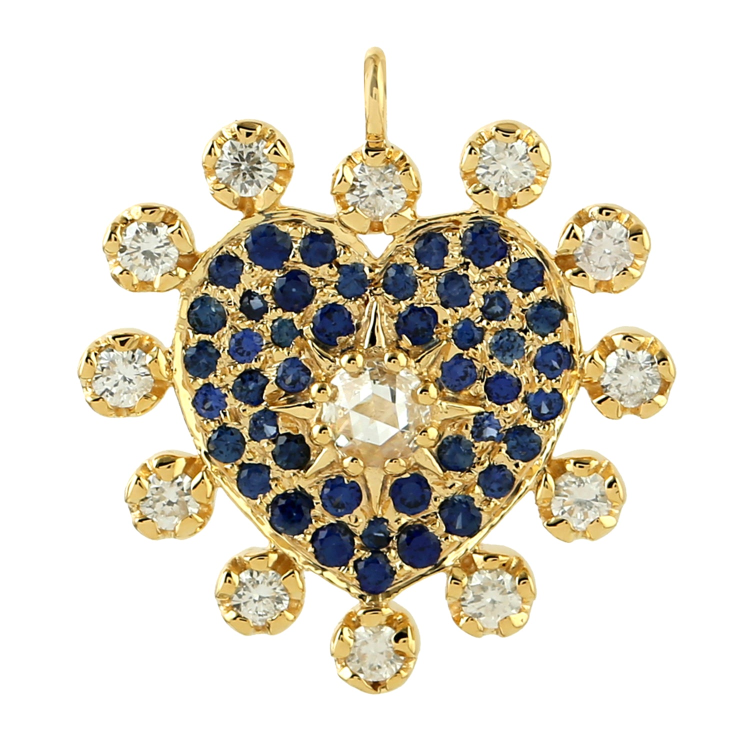 Blue Sapphire Gemstone Prong Set Diamond Heart Pendant In 18K Yellow Gold