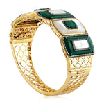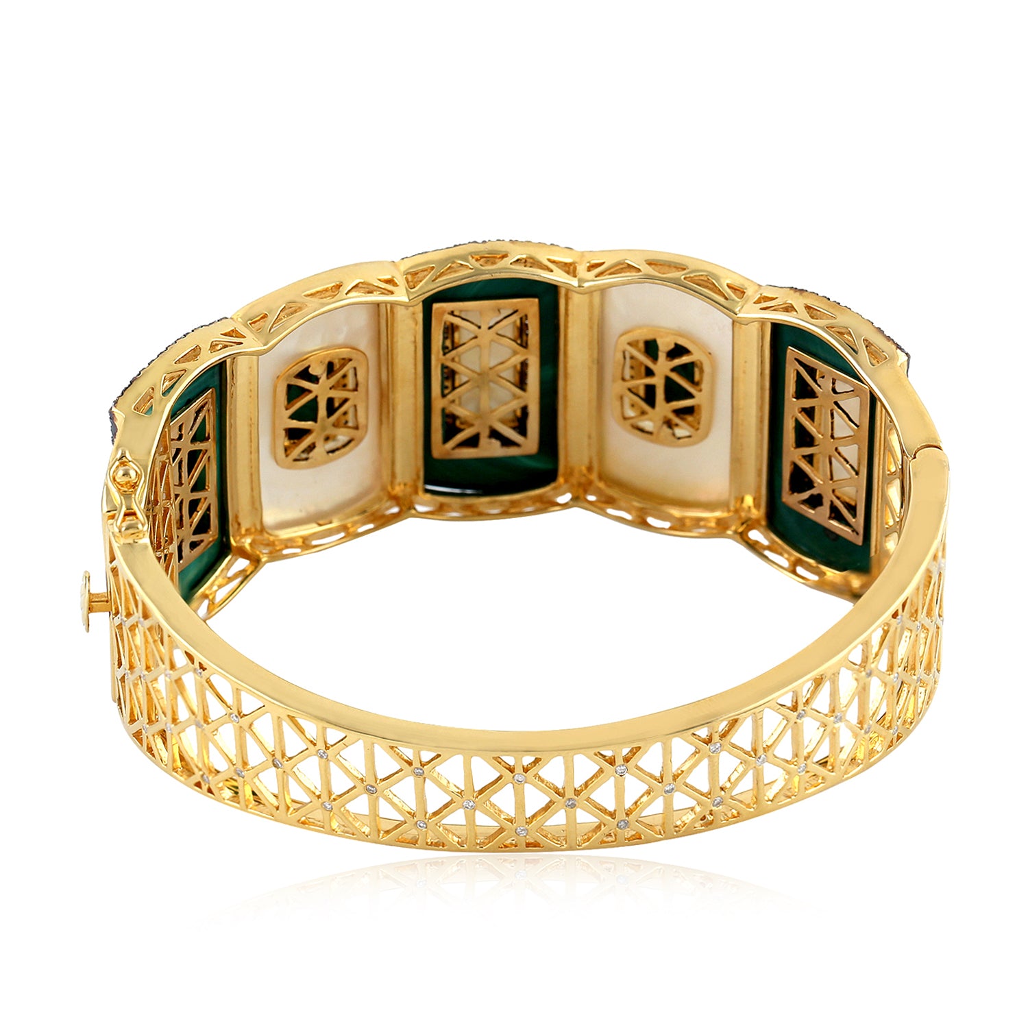 18K Yellow Gold Cushion Malachite Bezel MOP Pave Diamond Mughal Wedding Bangle