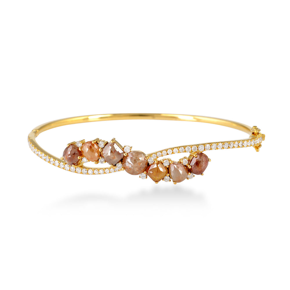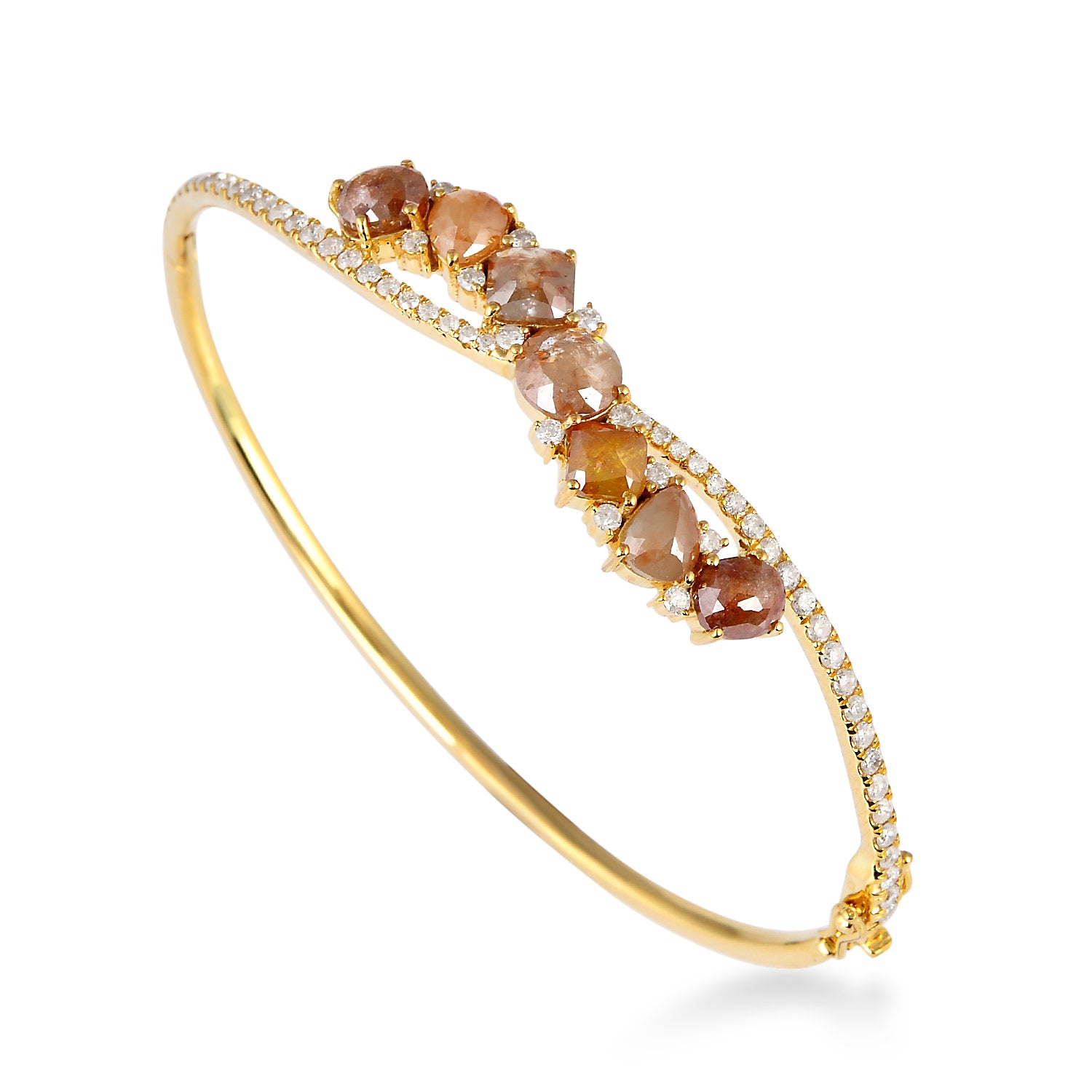 Mix Cut Ice Diamond Pave Unique Wedding Bangle In 18K Yellow Gold For Gifts