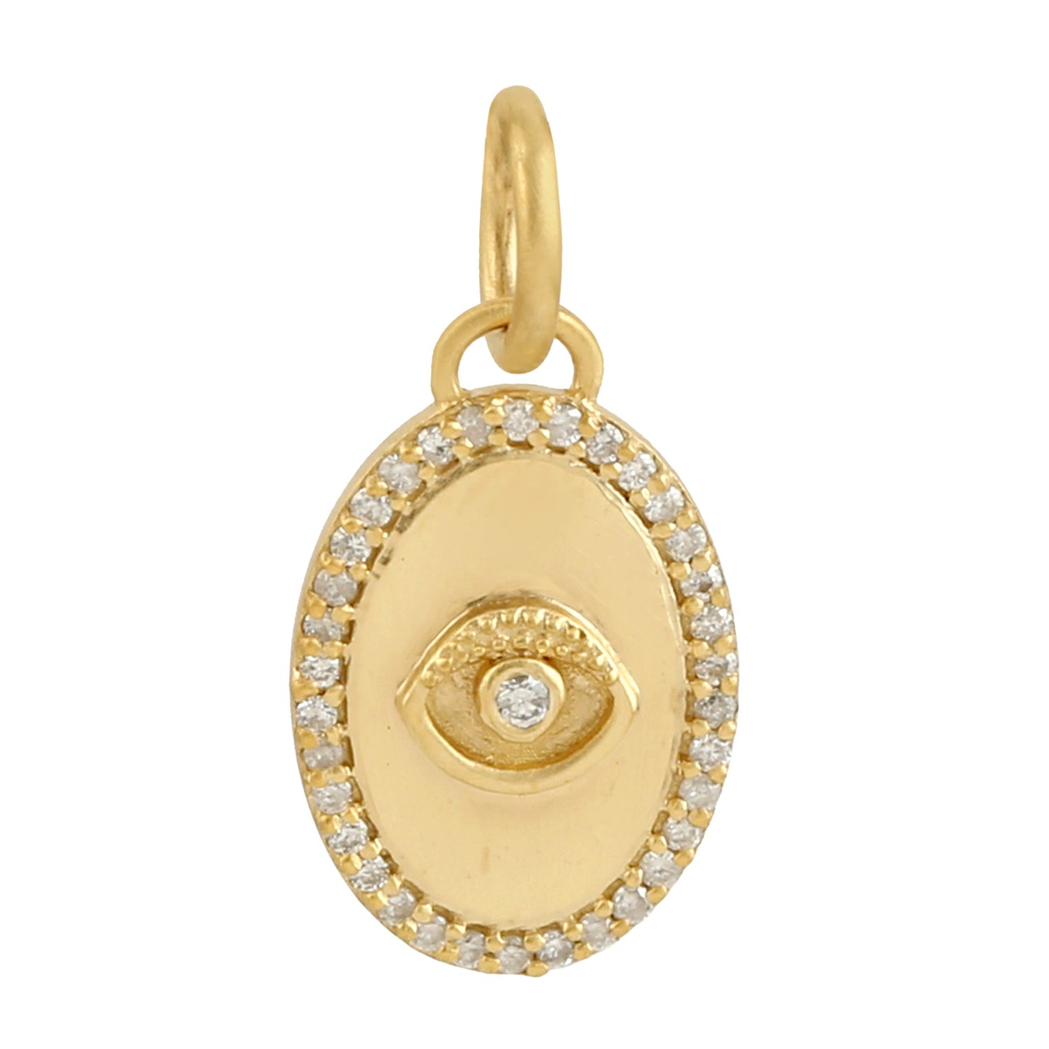 Pave Diamond Evil Eye Charm Pendant In 14k Yellow Gold Jewelry