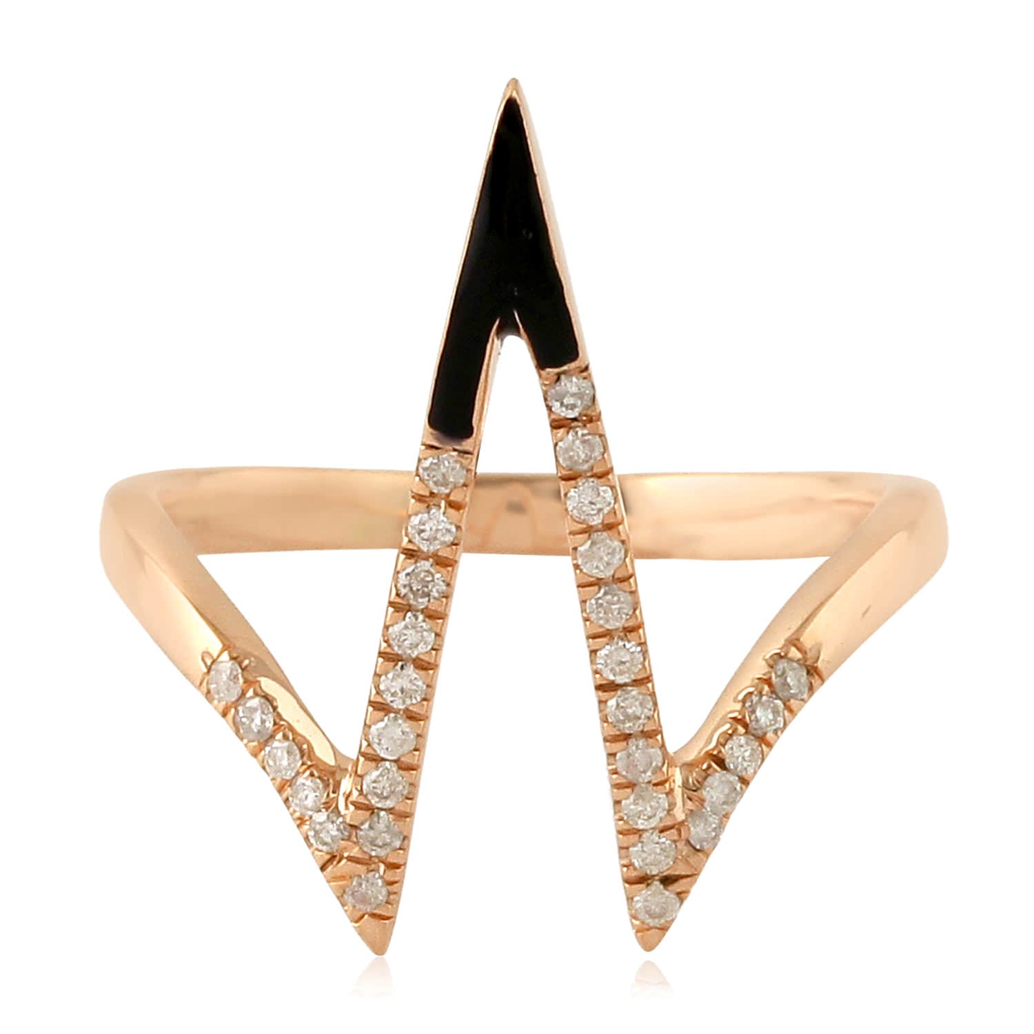 Natural Diamond Spike Long Ring In Rose Gold Enamel Jewelry Gift