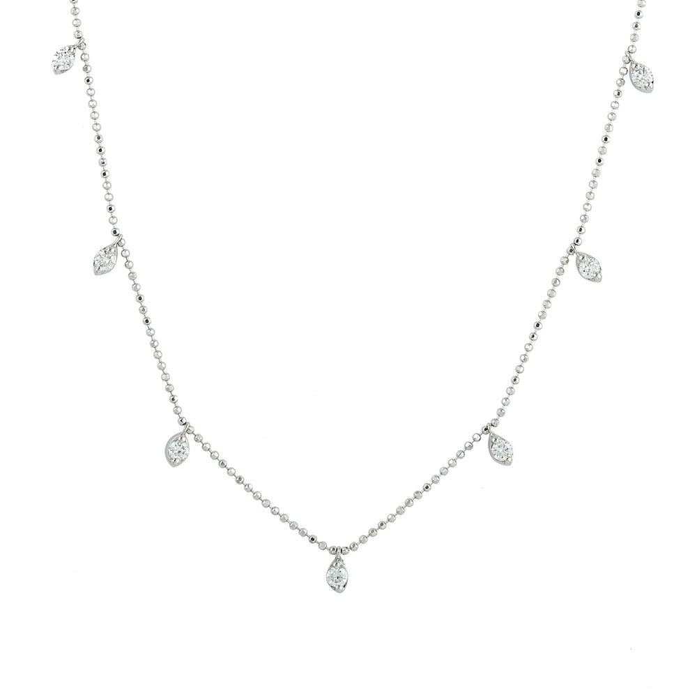 Natural Diamond by the Yard Necklace in 18k White Gold Dot Bead Chain – Fine Jewelry