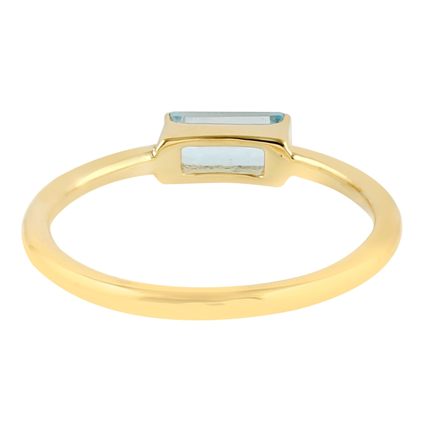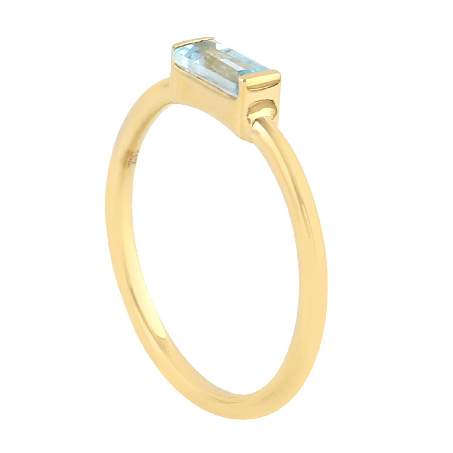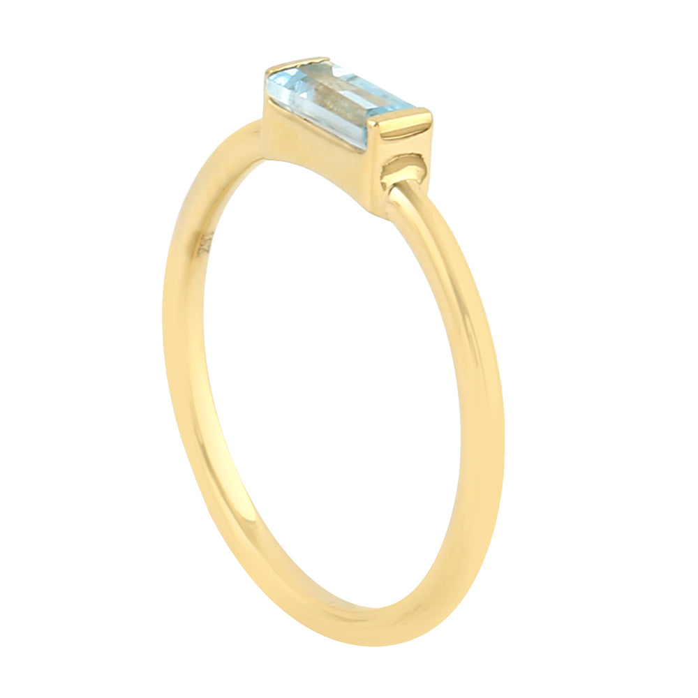 Baguette Cut Blue Topaz Gemstone Band Ring In 18k Yellow Gold