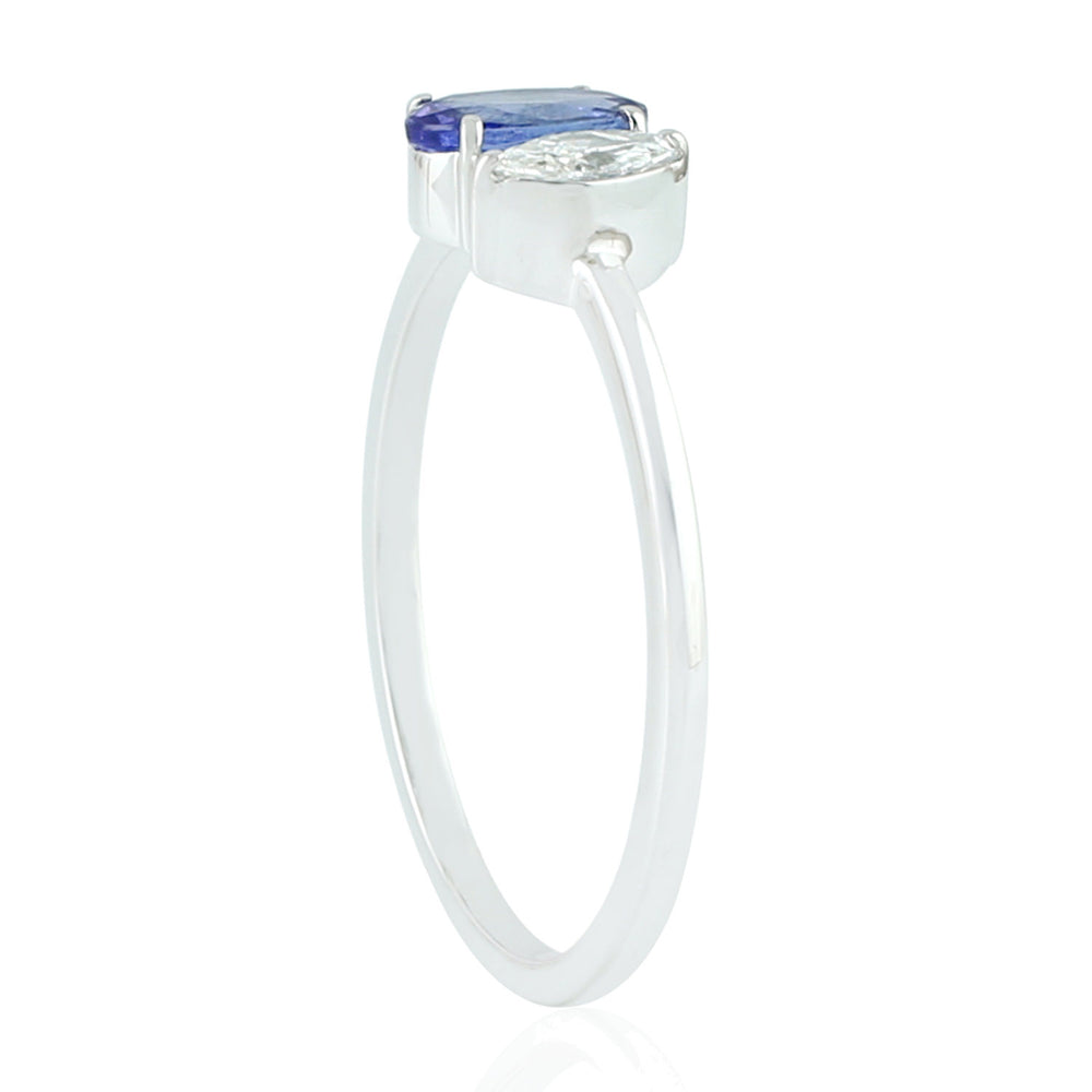Oval Cut Tanzanite Rose Cut Diamond Stackable Ring In White Gold