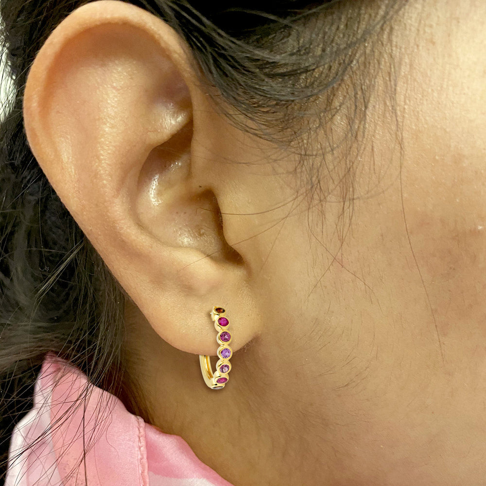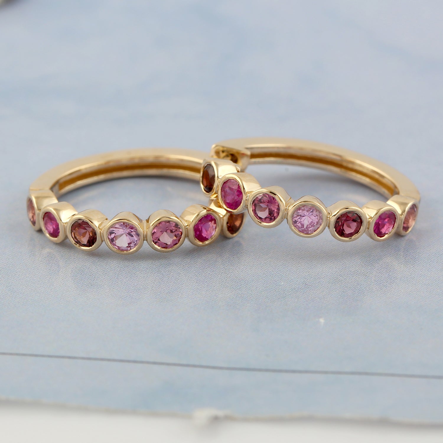 Rhodolite Ruby Multi Gemstone Hoop Earrings In 18k Yellow Gold Jewelry