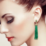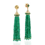 Faceted Emerald Pave Diamond Beads Tassel Earrings In 18K Yellow Gold