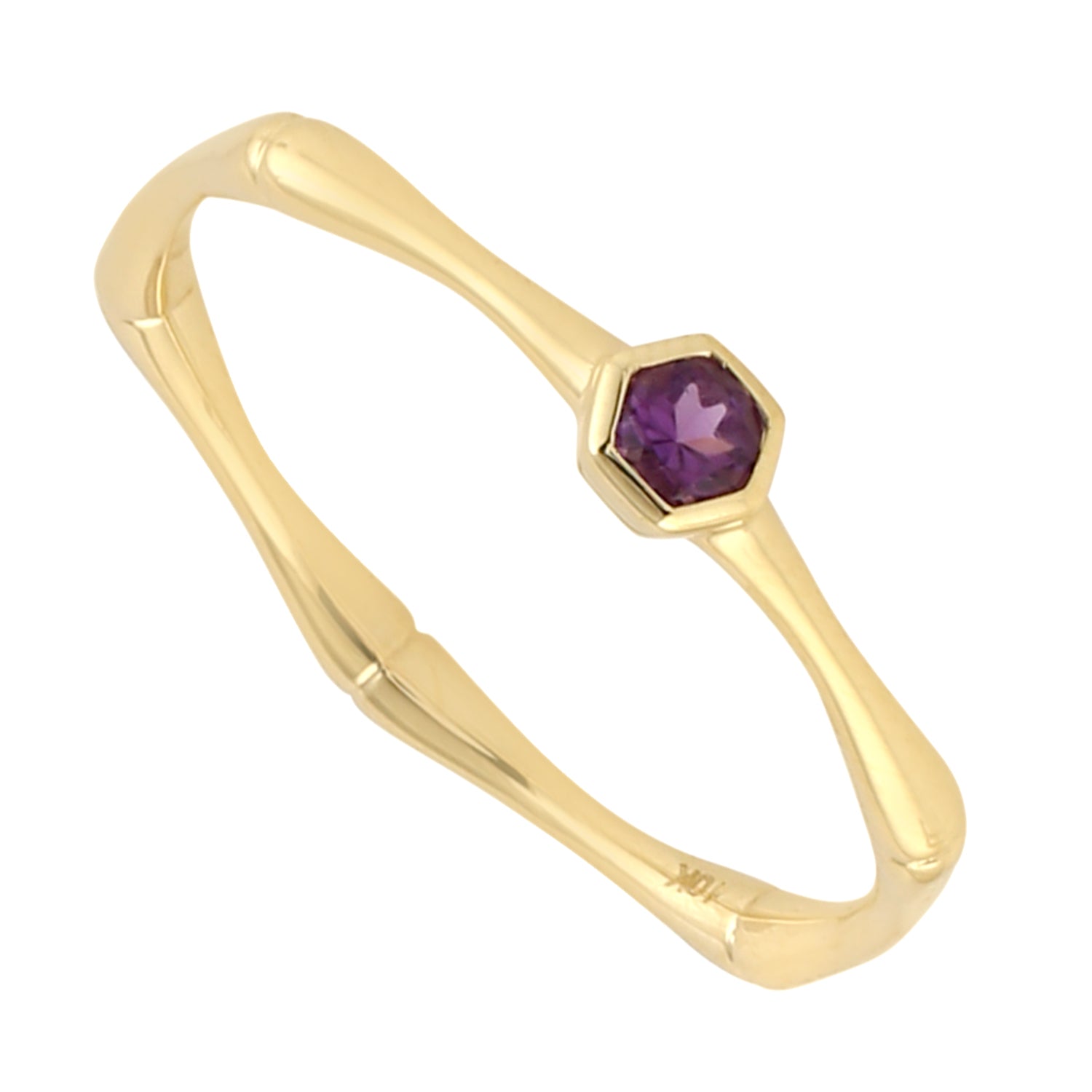 10k Yellow Gold Amethyst Gemstone Band Ring Jewelry For Women's