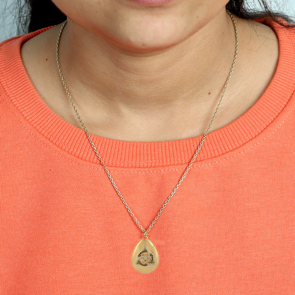 14k Yellow Gold Pave Black & White Diamond Trinity Knot Drop Pendant