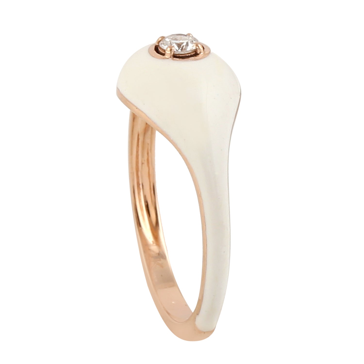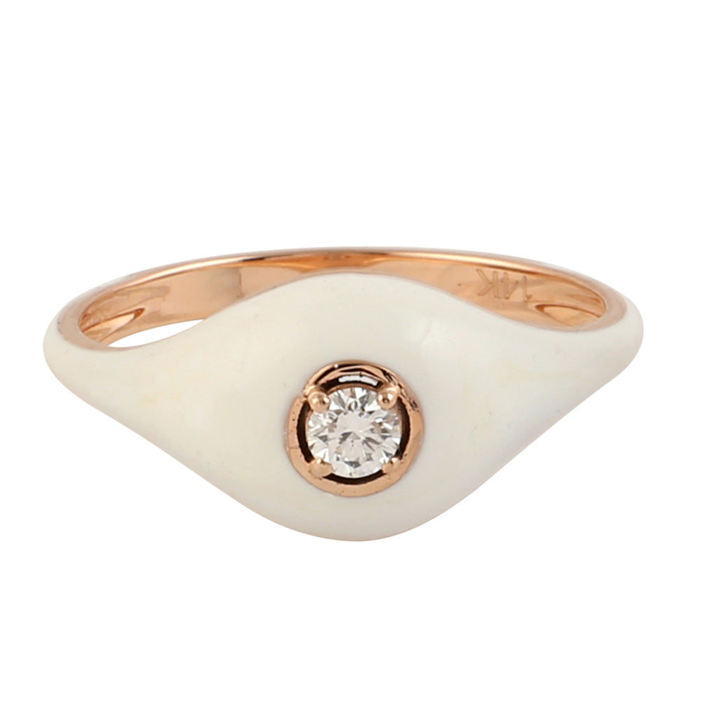 14k Rose Gold Prong Diamond Enamel Band Ring Jewelry For Gift