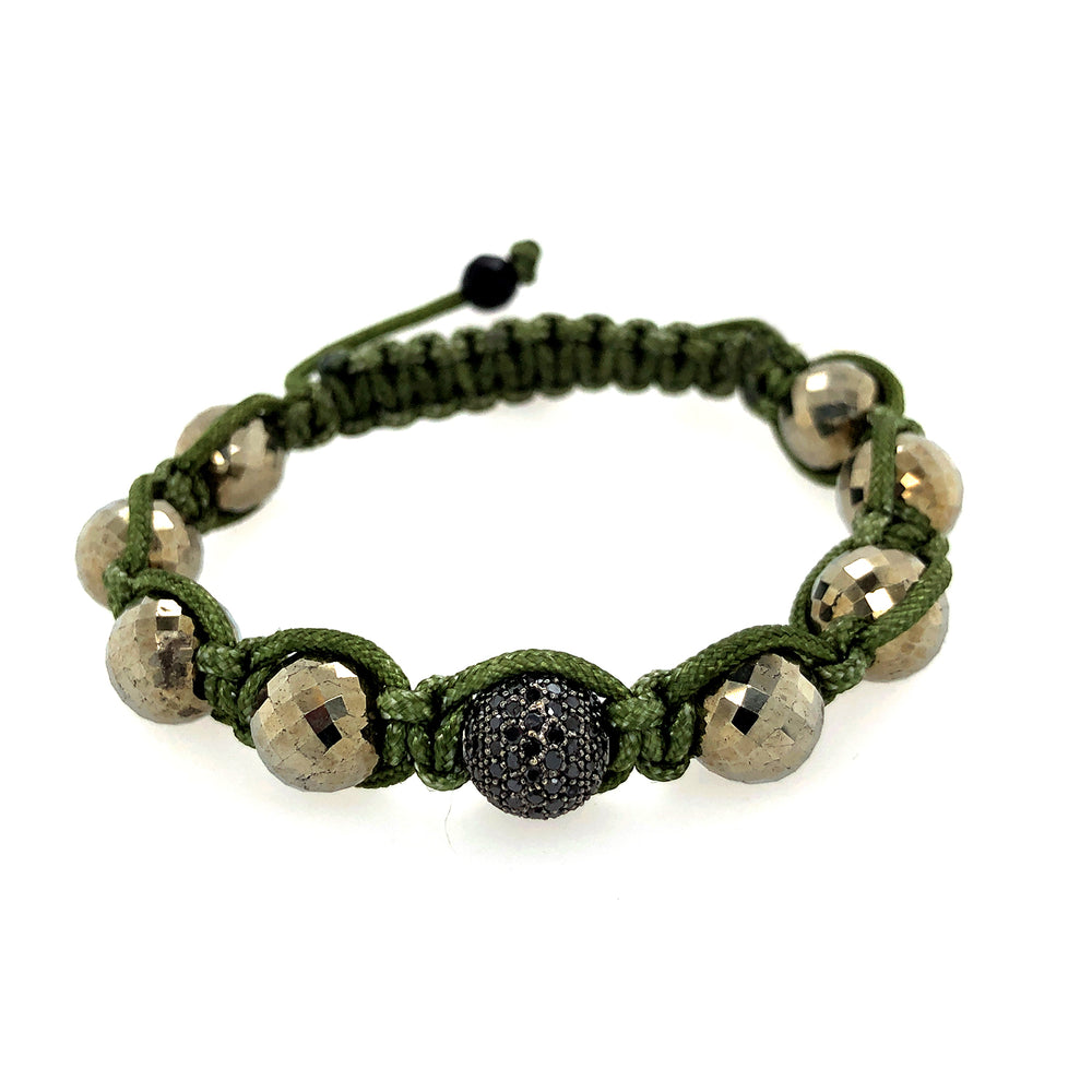 • 14k White Gold Micro Pave Black Diamond Beads Macramé Bracelet Jewelry