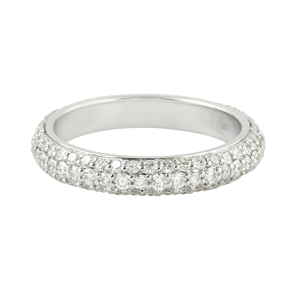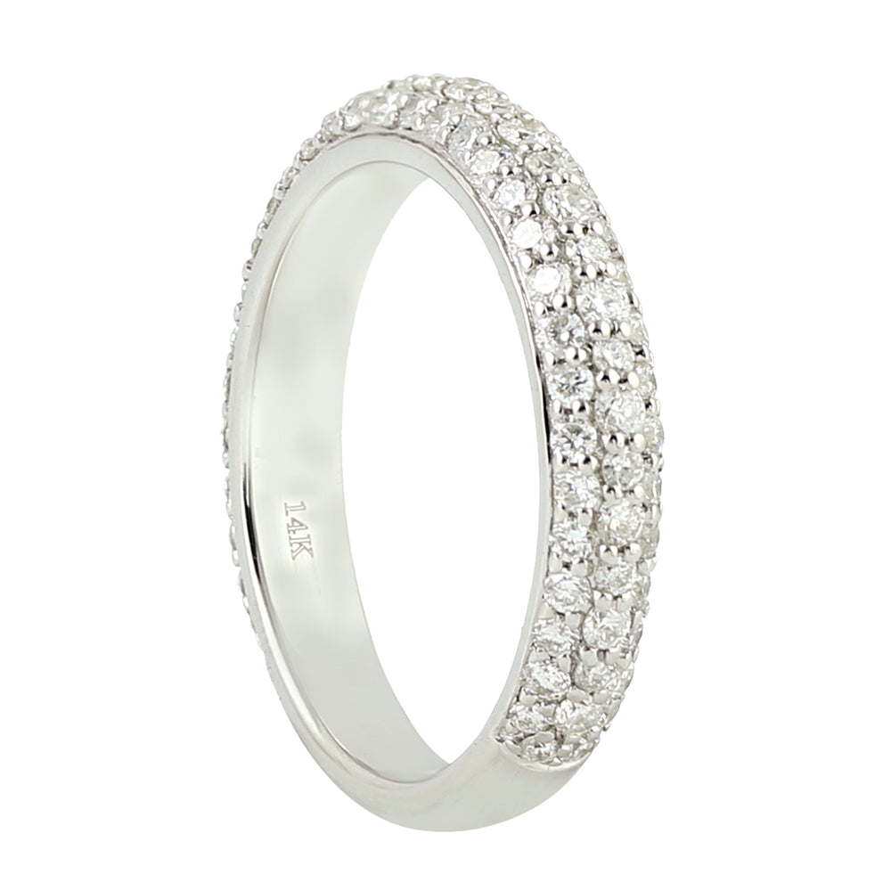 14K White Gold Pave Diamond Eternity Band Ring For Her