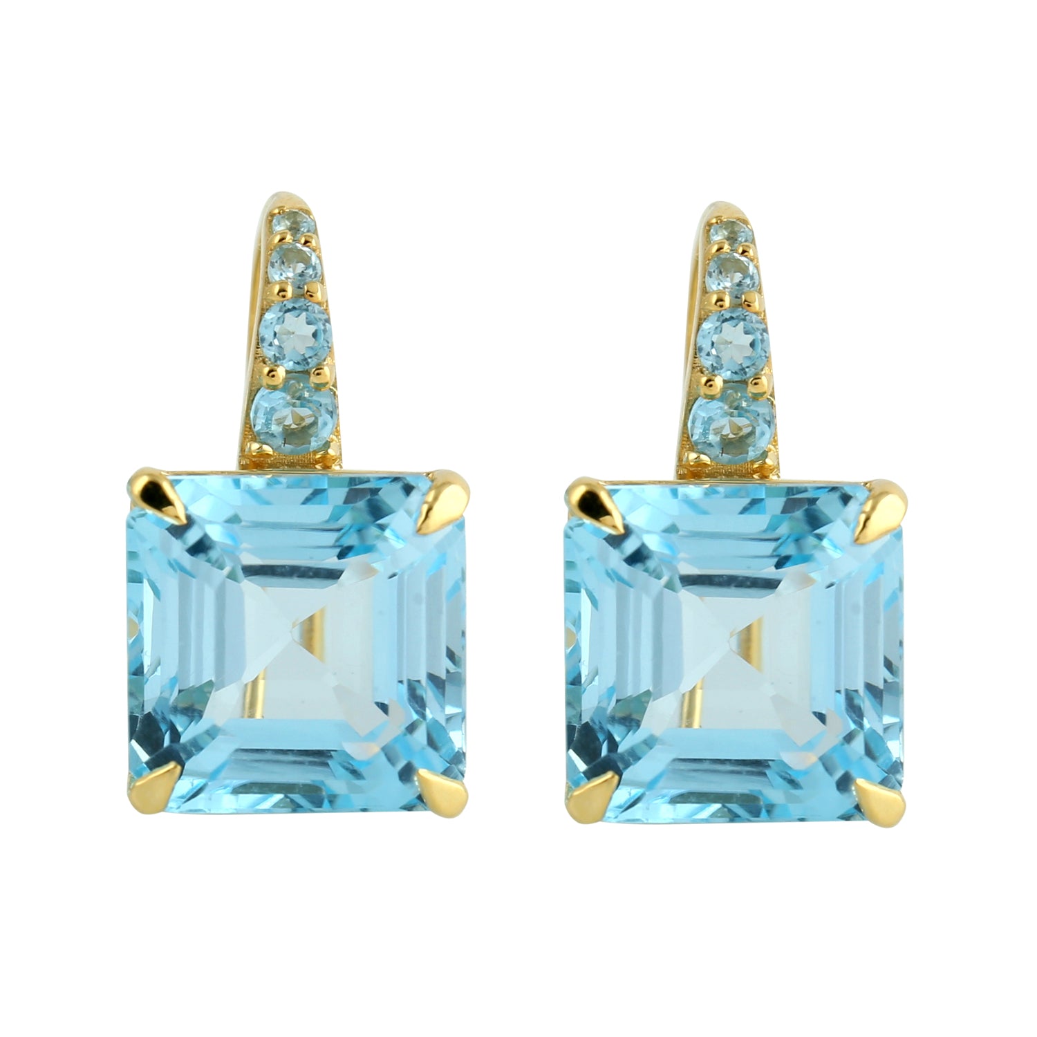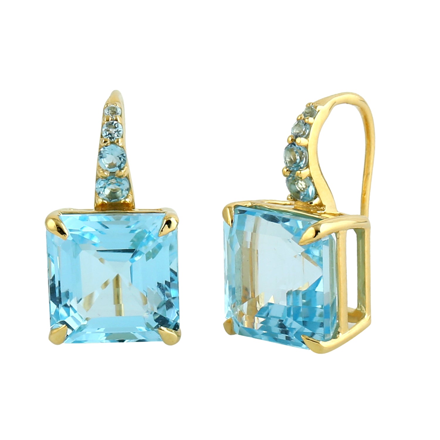 14k Yellow Gold Square Cut Blue Topaz Gemstone Ear Hook Earrings