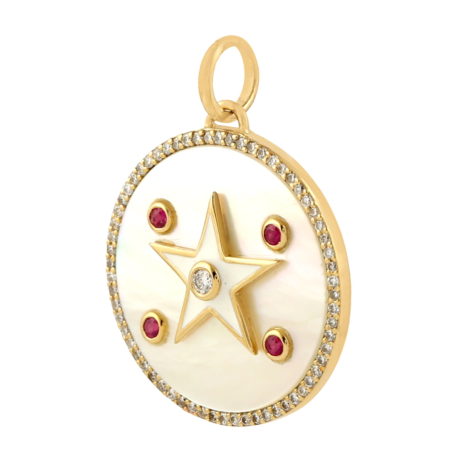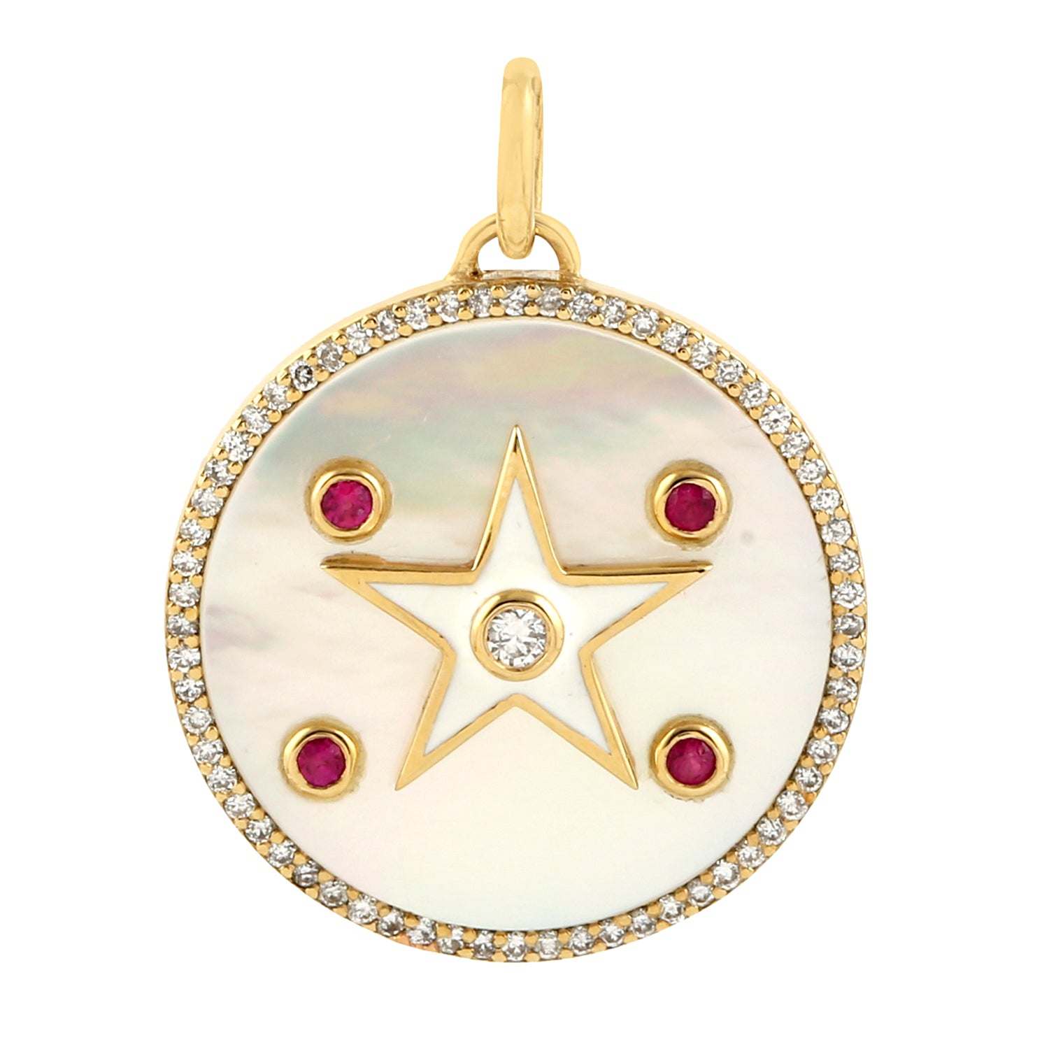 14K Yellow Gold Mother of Pearl Bezel Ruby & Pave Diamond Star Pendant – Celestial Jewelry Gift