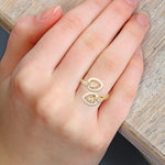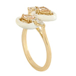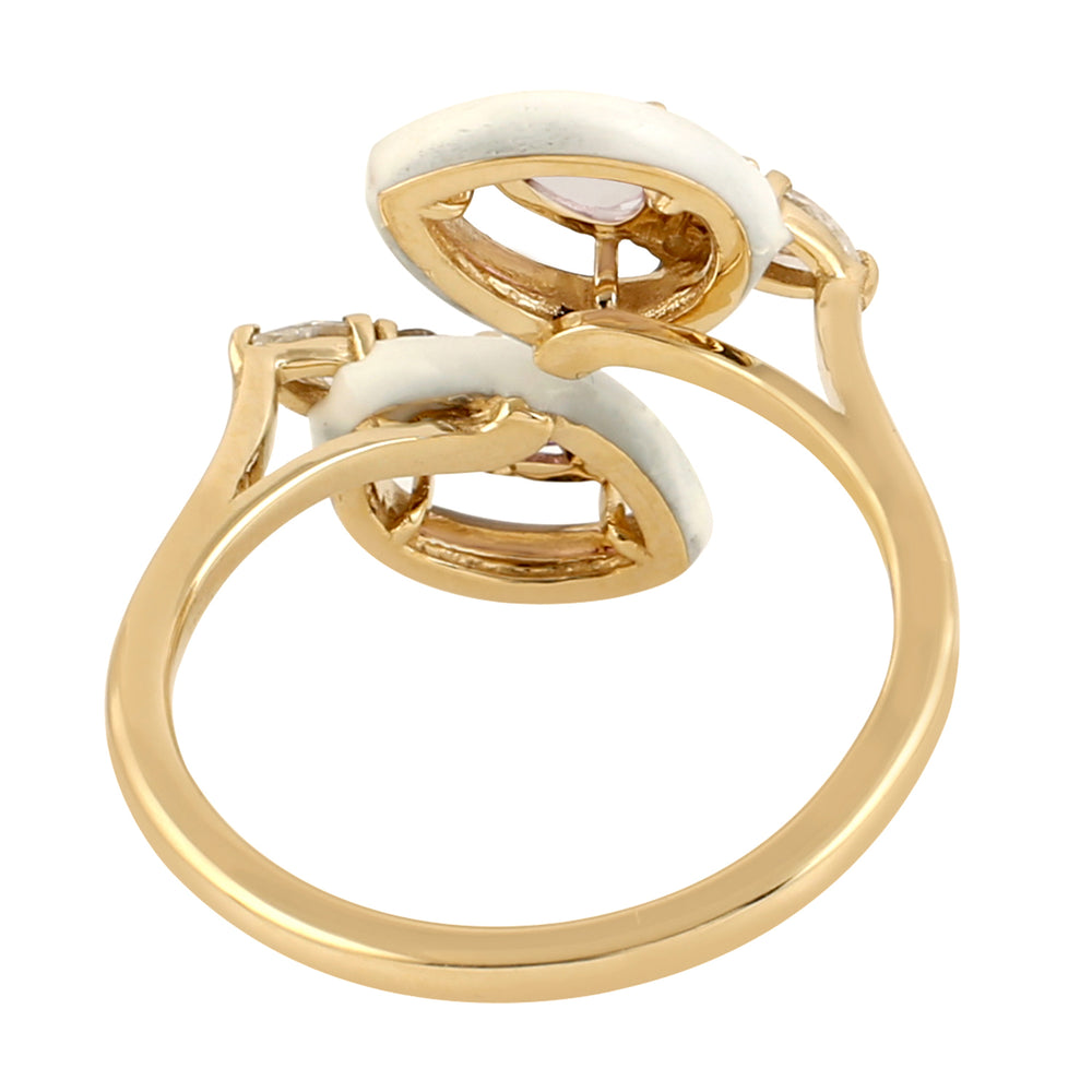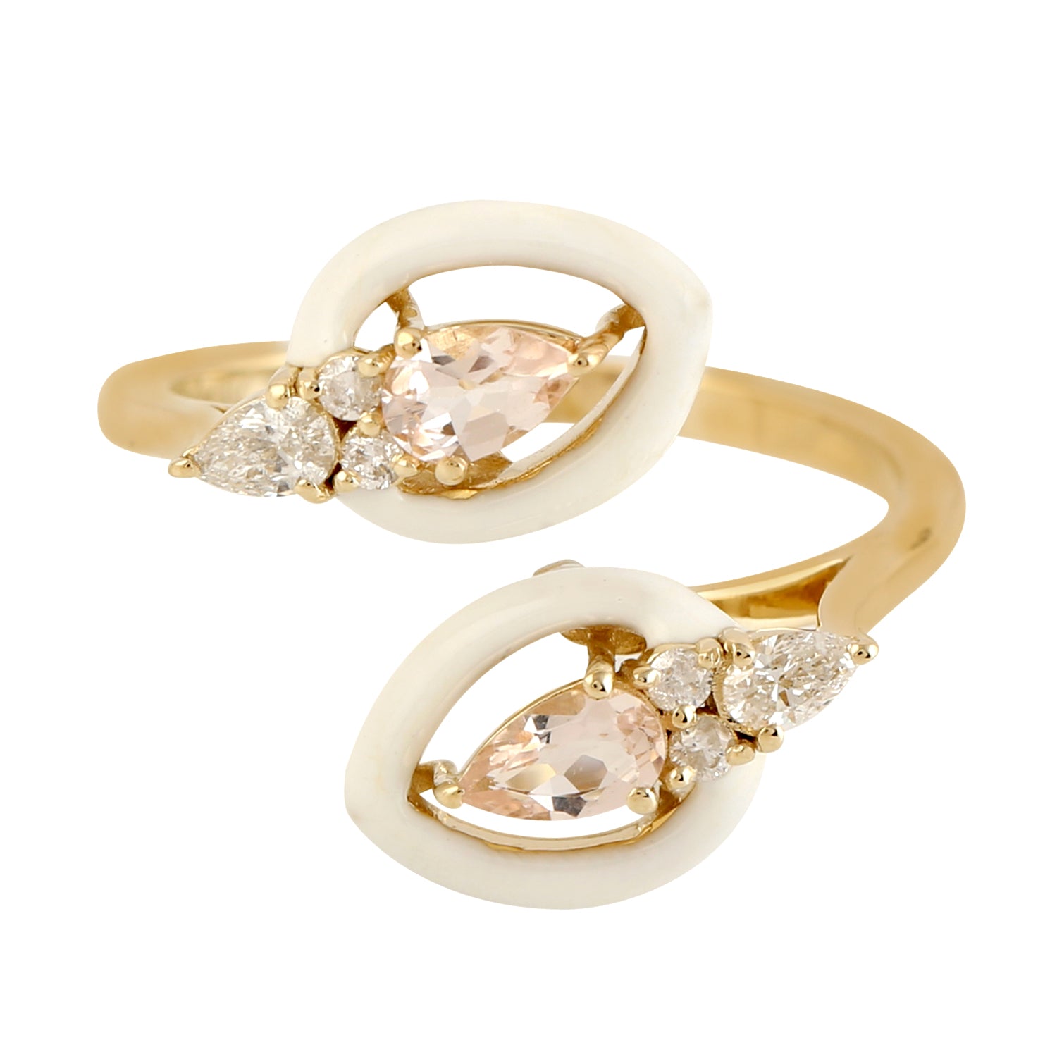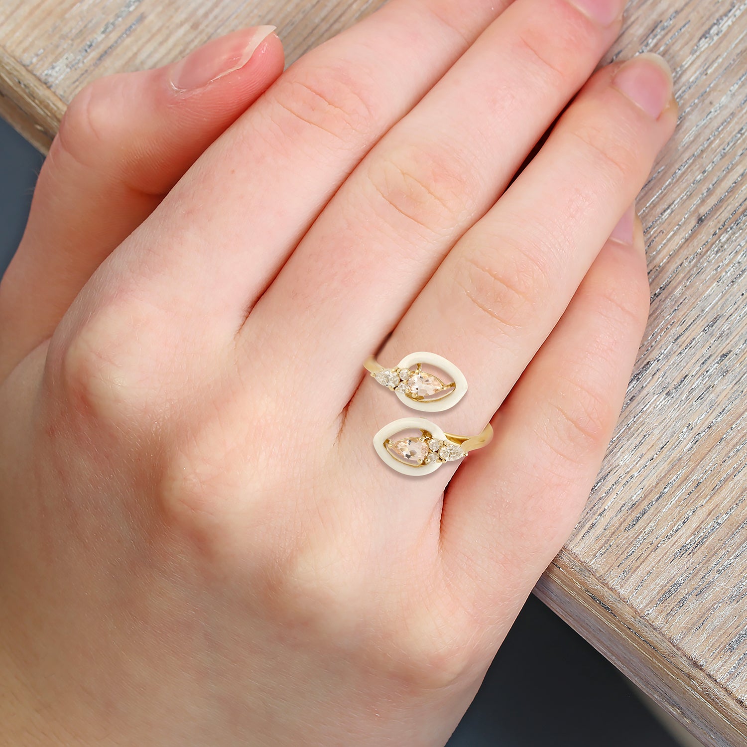 Pear Cut Morganite Gemstone Prong Diamond Enamel Bypass Ring in Yellow Gold