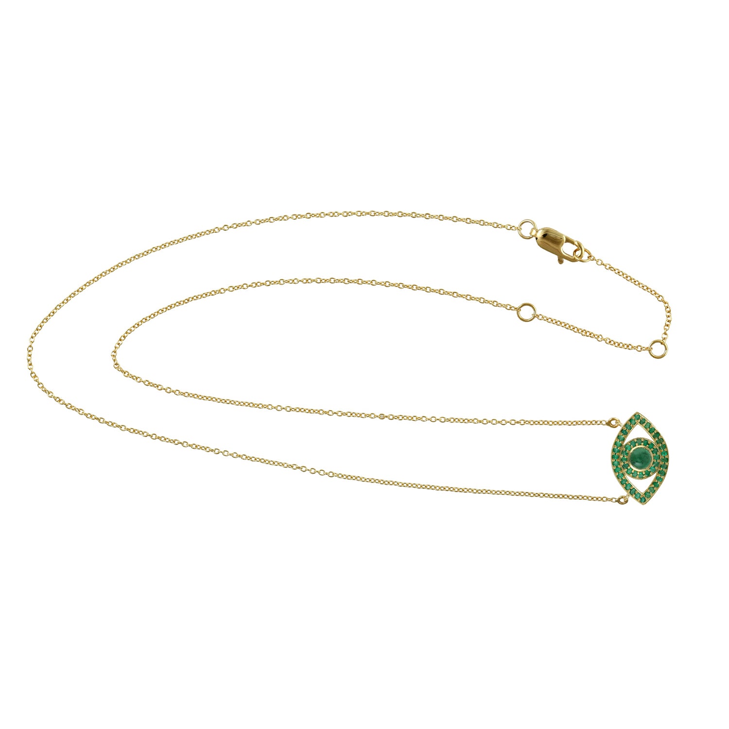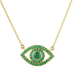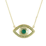 14K Yellow Gold Pave Emerald Gemstone Evil Eye Choker Necklace