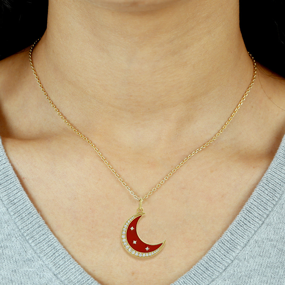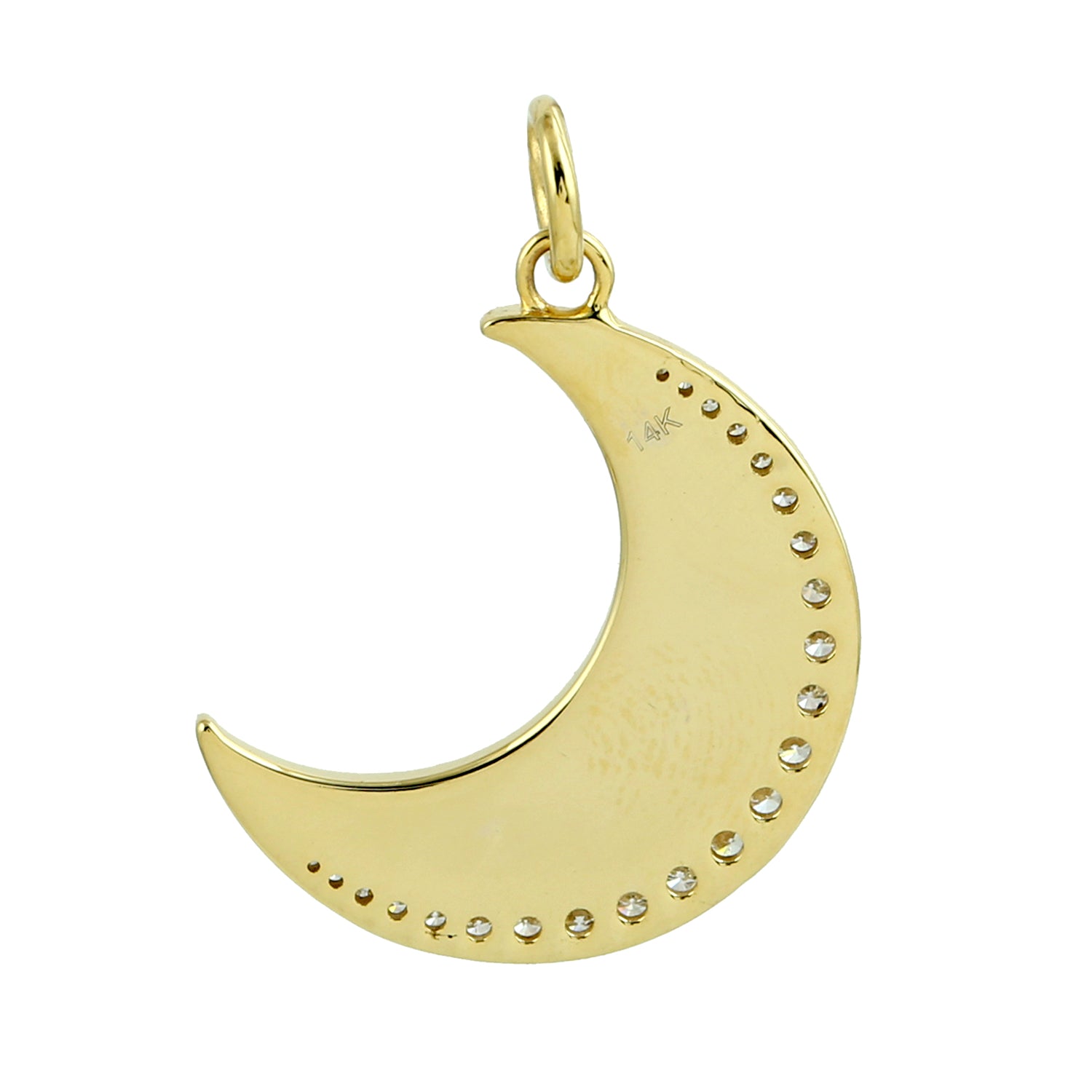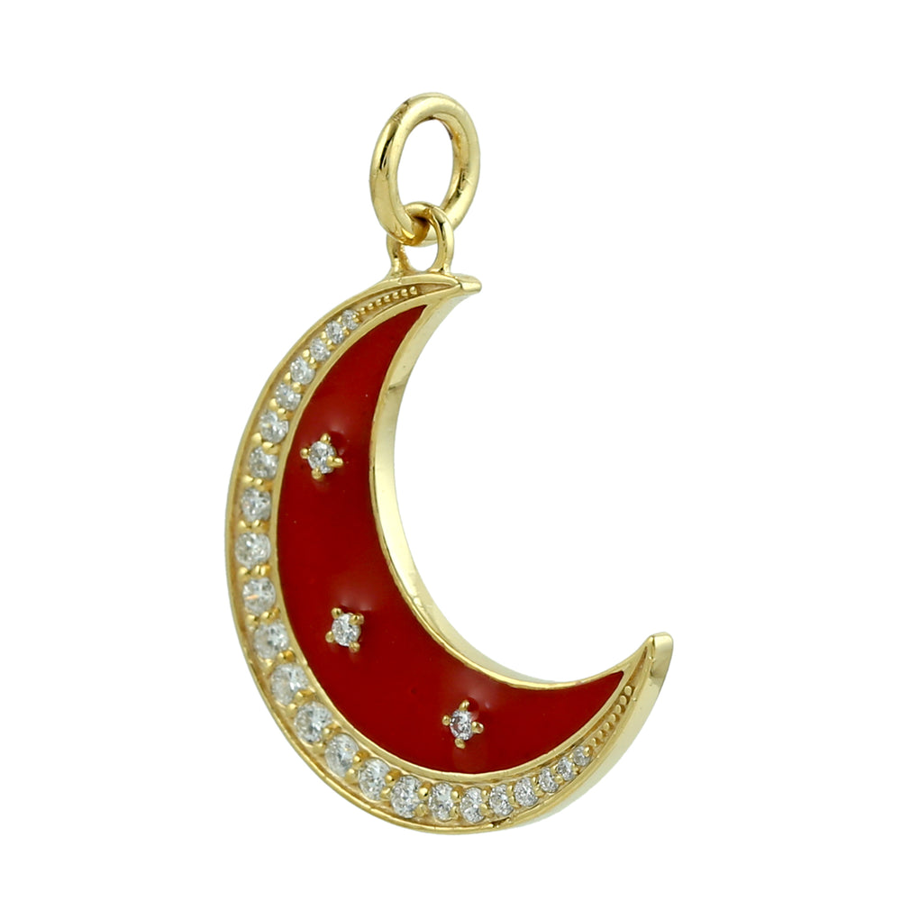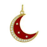 14K Yellow Gold Pave Diamond Enamel Crescent Half Moon Pendant