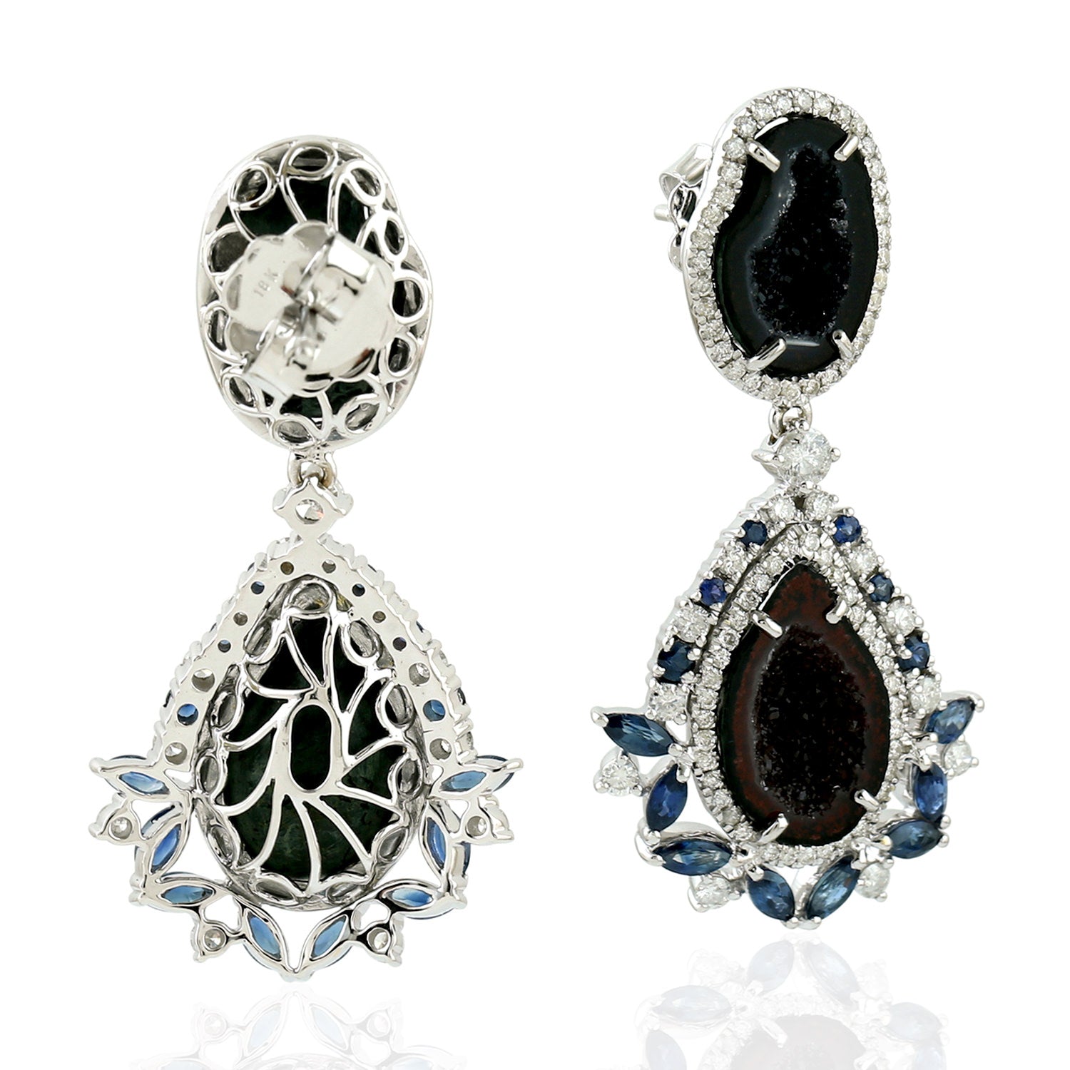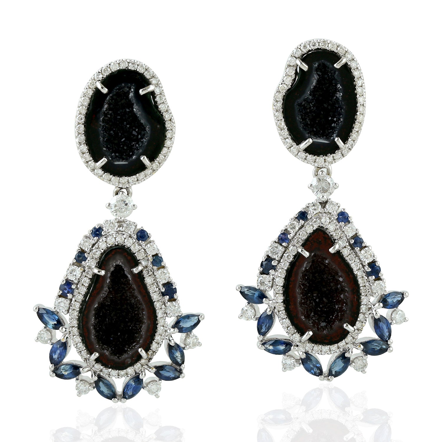 Uneven Geode Marquise Blue Sapphire Pave Diamond Dangler in White Gold