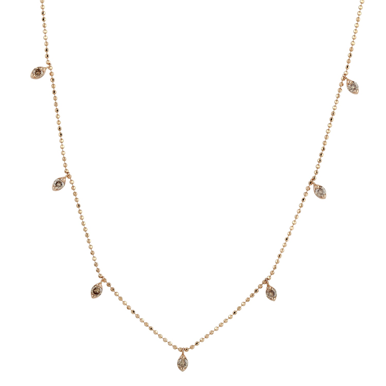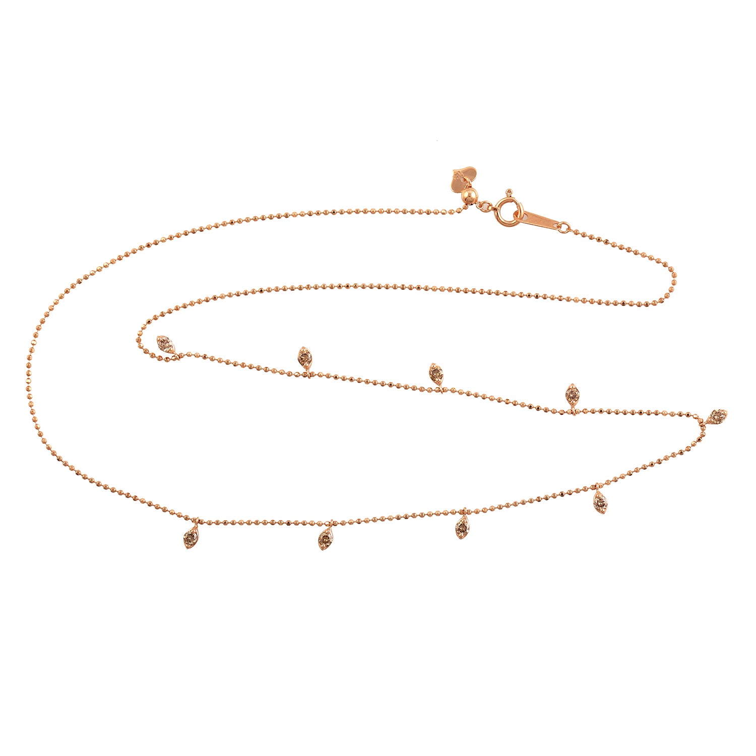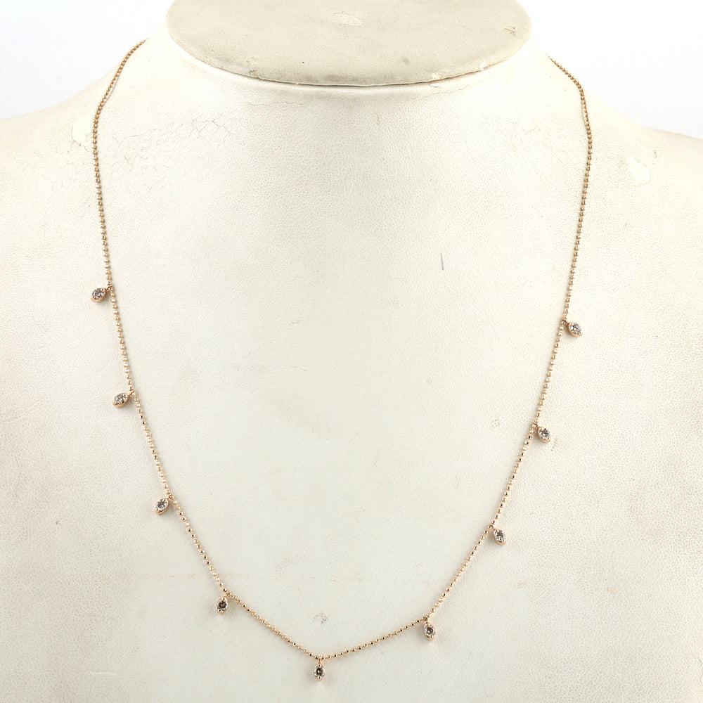 18K Rose Gold Chain Princess Necklace Pave Diamond Jewelry