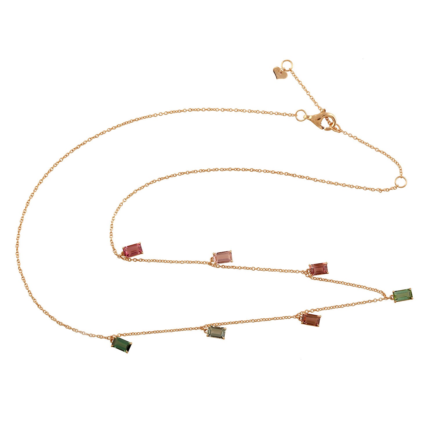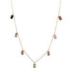 Handmade 18K Rose Gold Baguette Multicolor Tourmaline Princess Necklace Jewelry