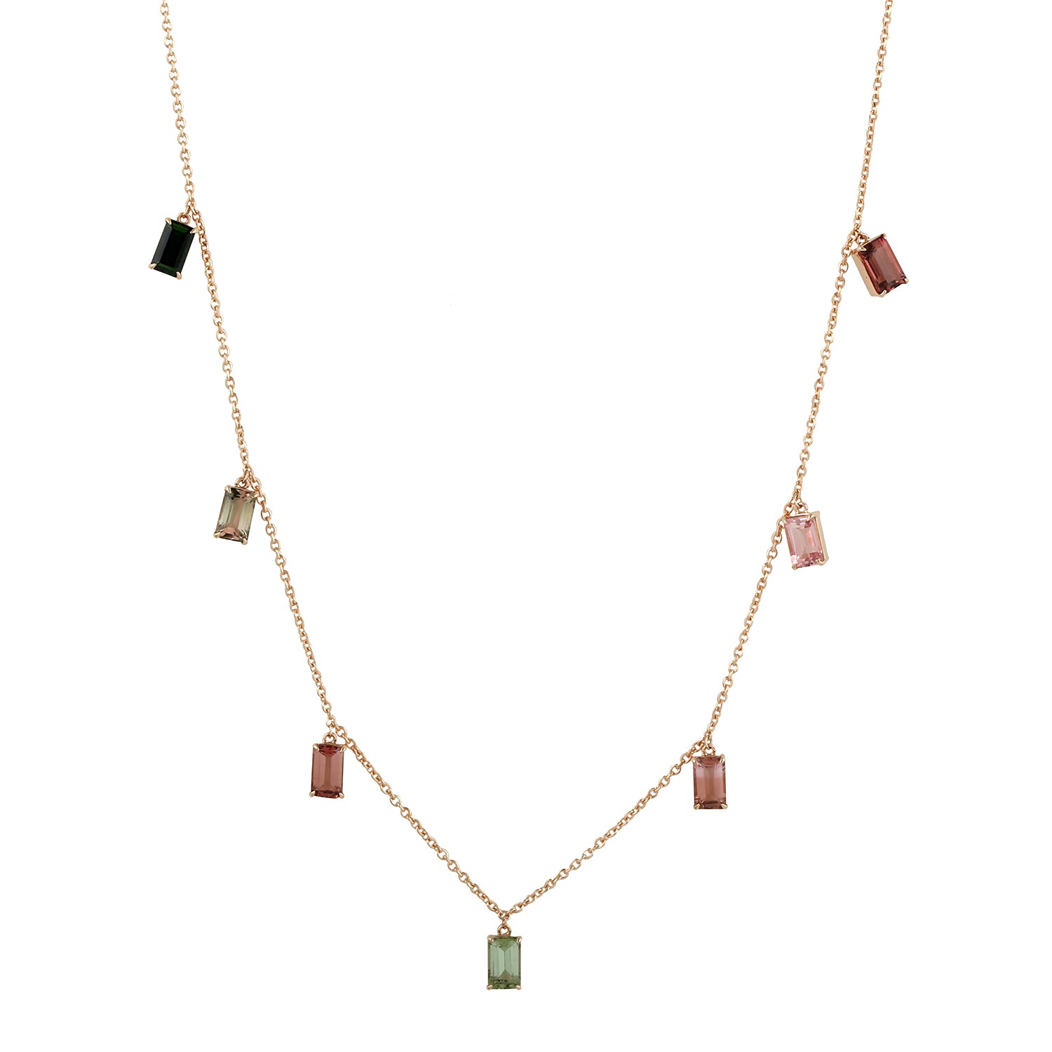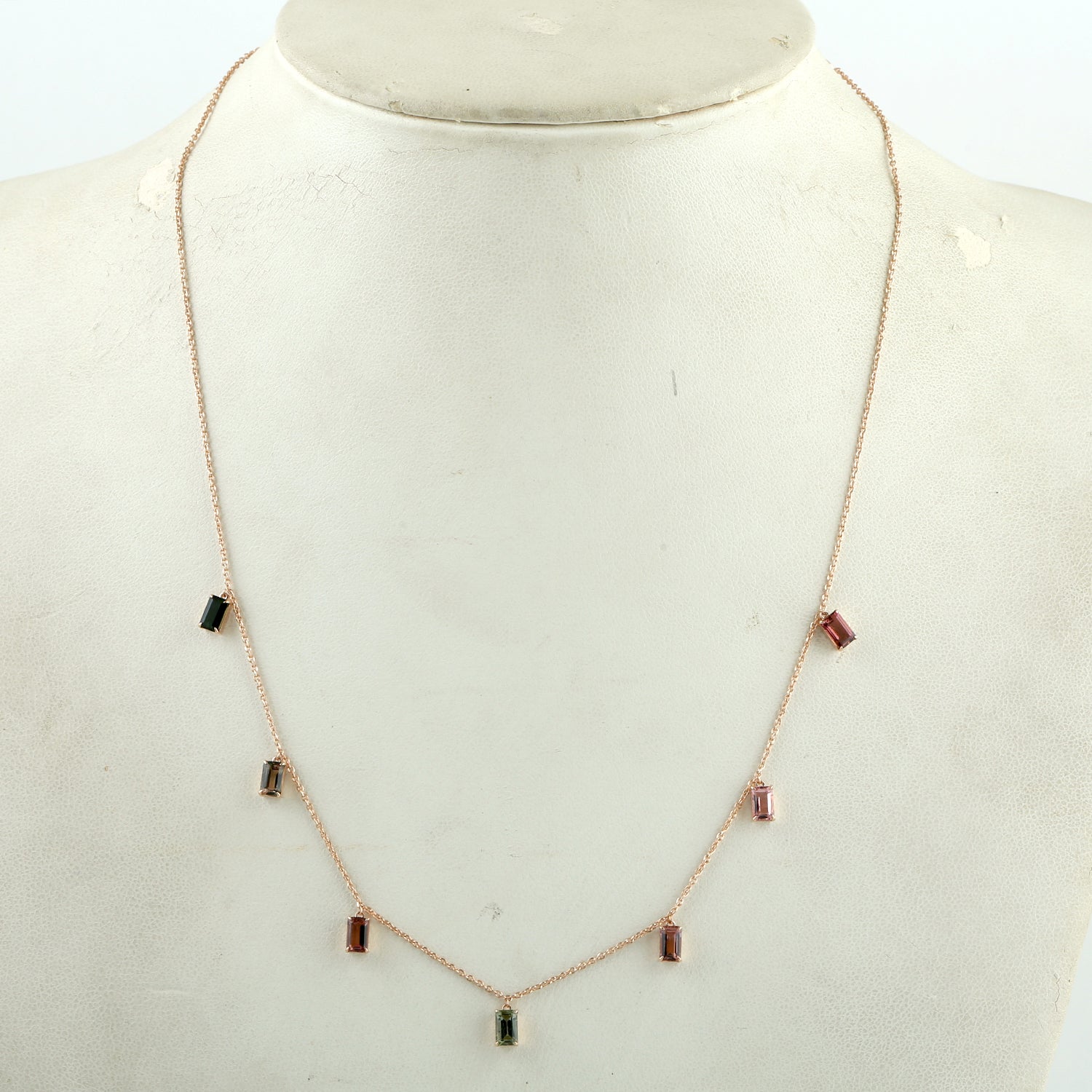 • Handmade 18K Rose Gold Baguette Multicolor Tourmaline Princess Necklace Jewelry