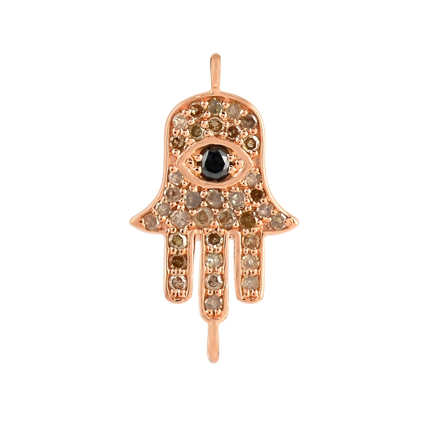 18K Rose Gold Pave Natural Ice Diamond Hamsa Connector Finding For Sale