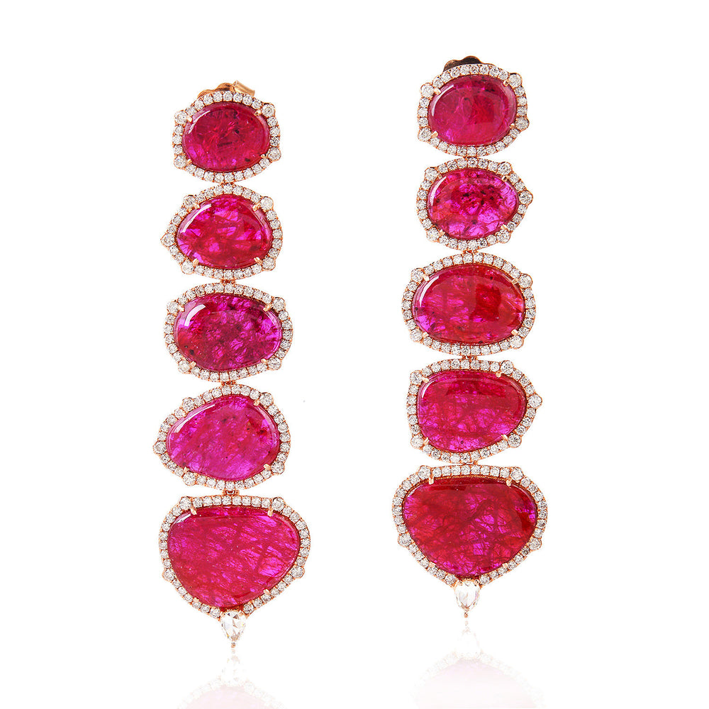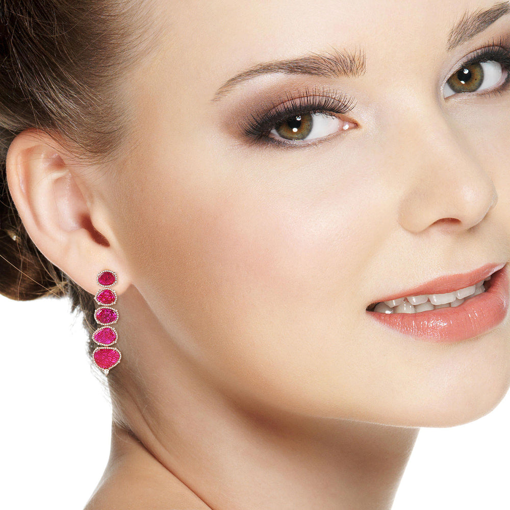 Precious Gemstone Tier Danglers – Slice Ruby & Pave Diamonds in 18K Rose Gold