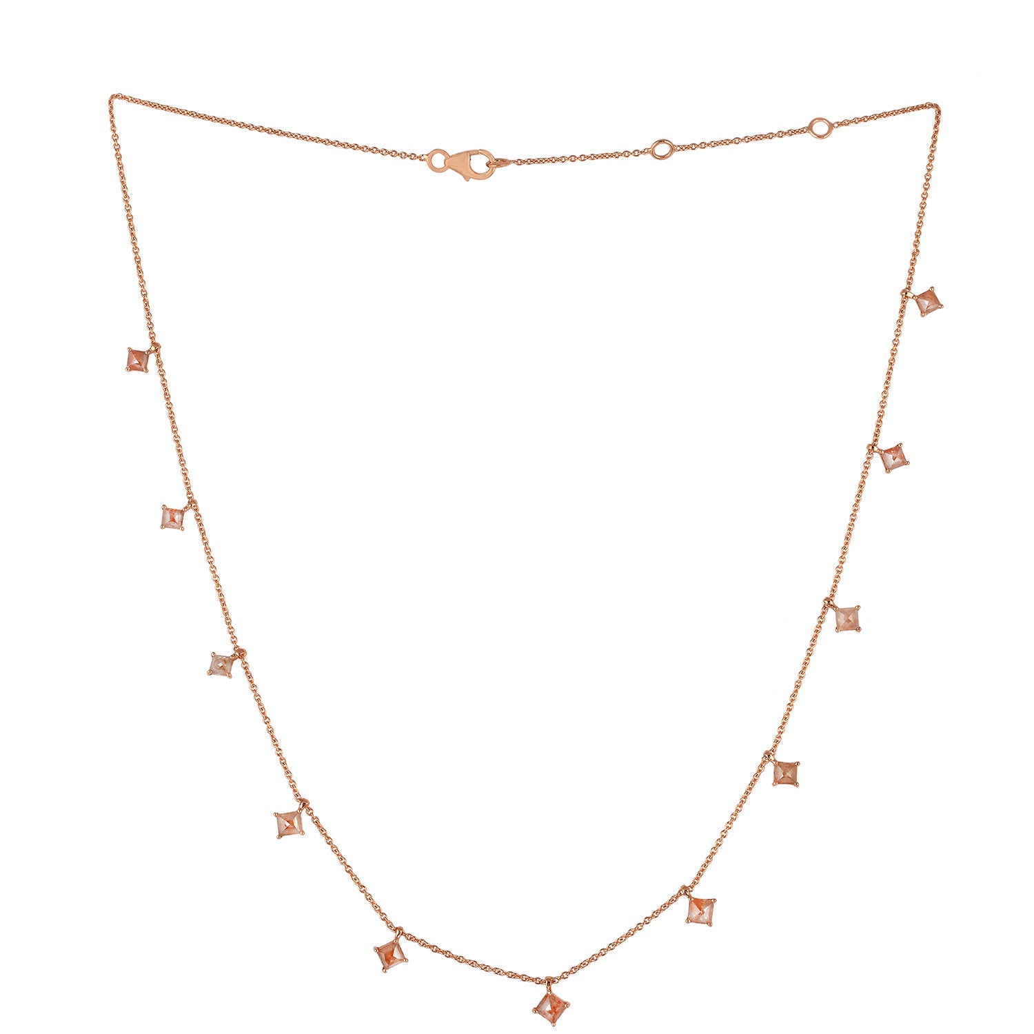 18K Rose Gold Station Necklace with Princess-Cut Ice Diamonds