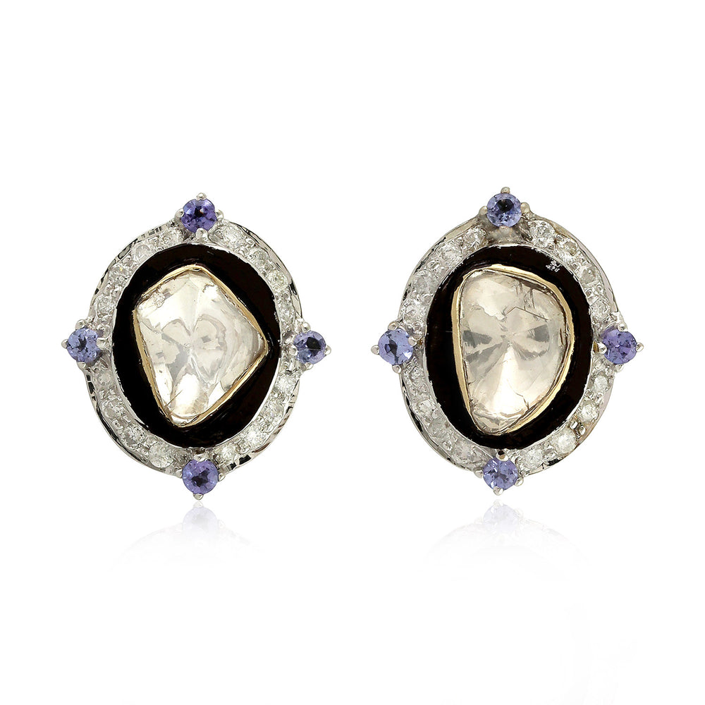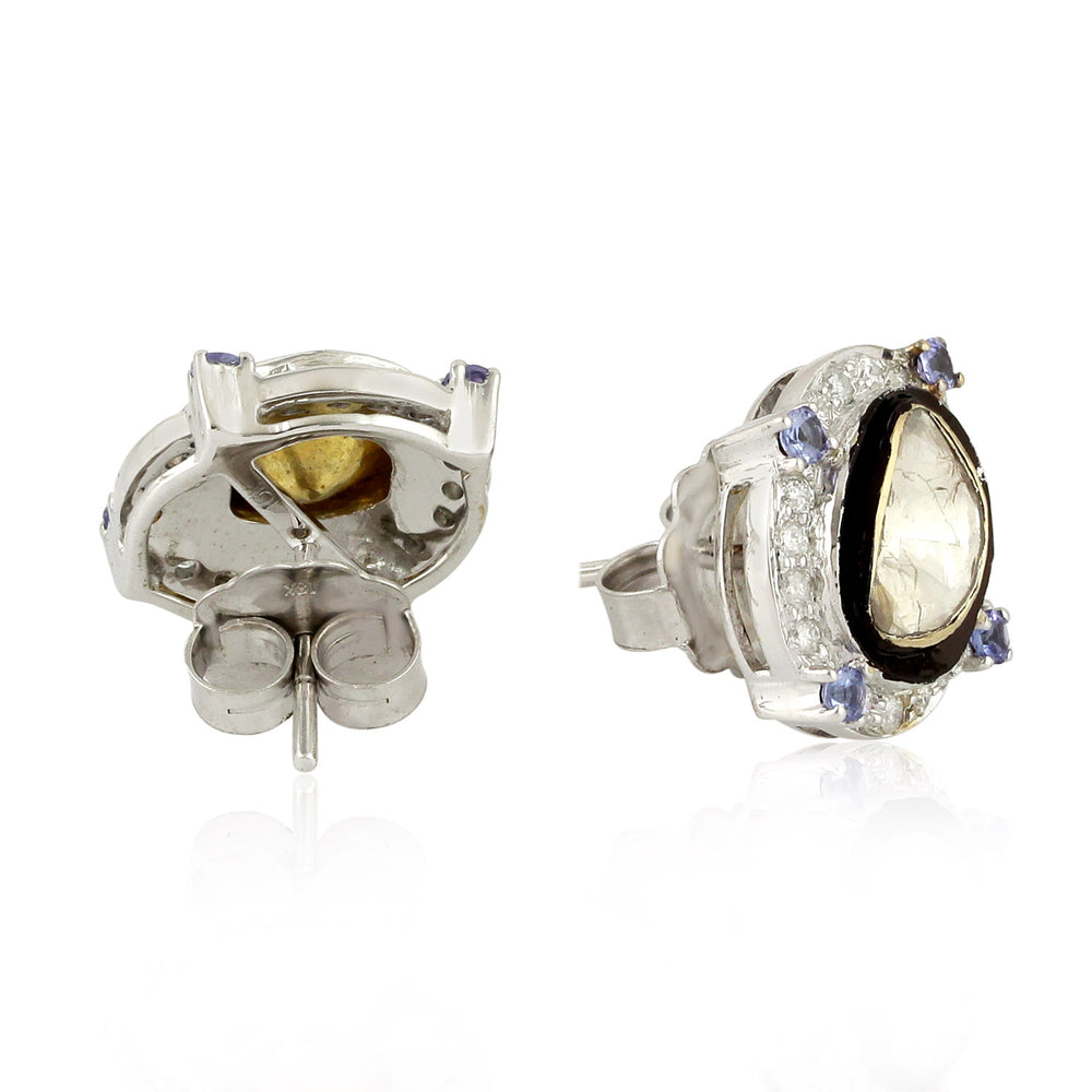 18K White Gold Rose Cut Diamond Tanzanite Stud Earrings For Women's Gift