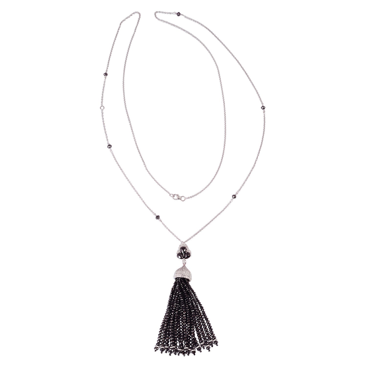 • 18K White Gold Black Diamond Tassel Necklace Luxury Statement Jewelry